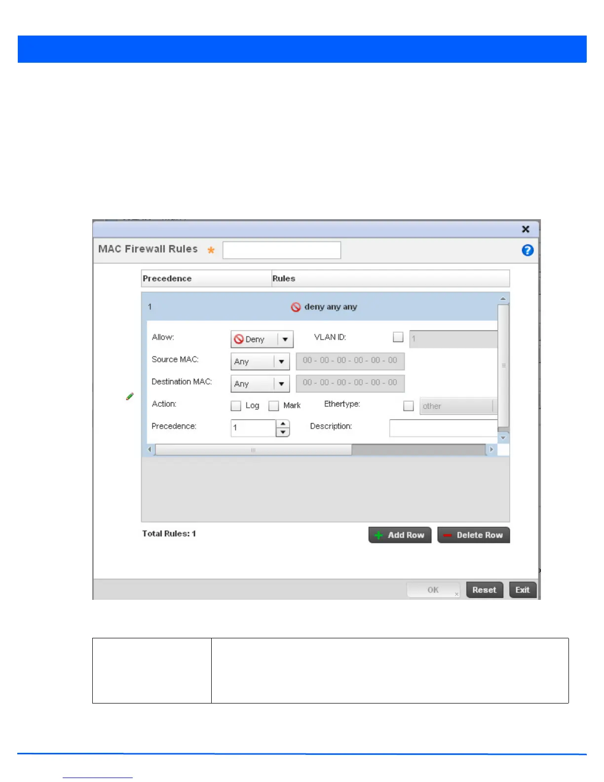 14. Define the following parameters for either the inbound or outbound MAC Firewall Rules: