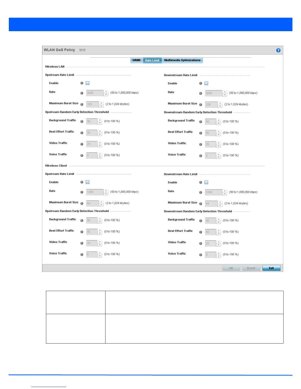 6. Configure the following intended Upstream Rate Limit parameters for the selected WLAN: