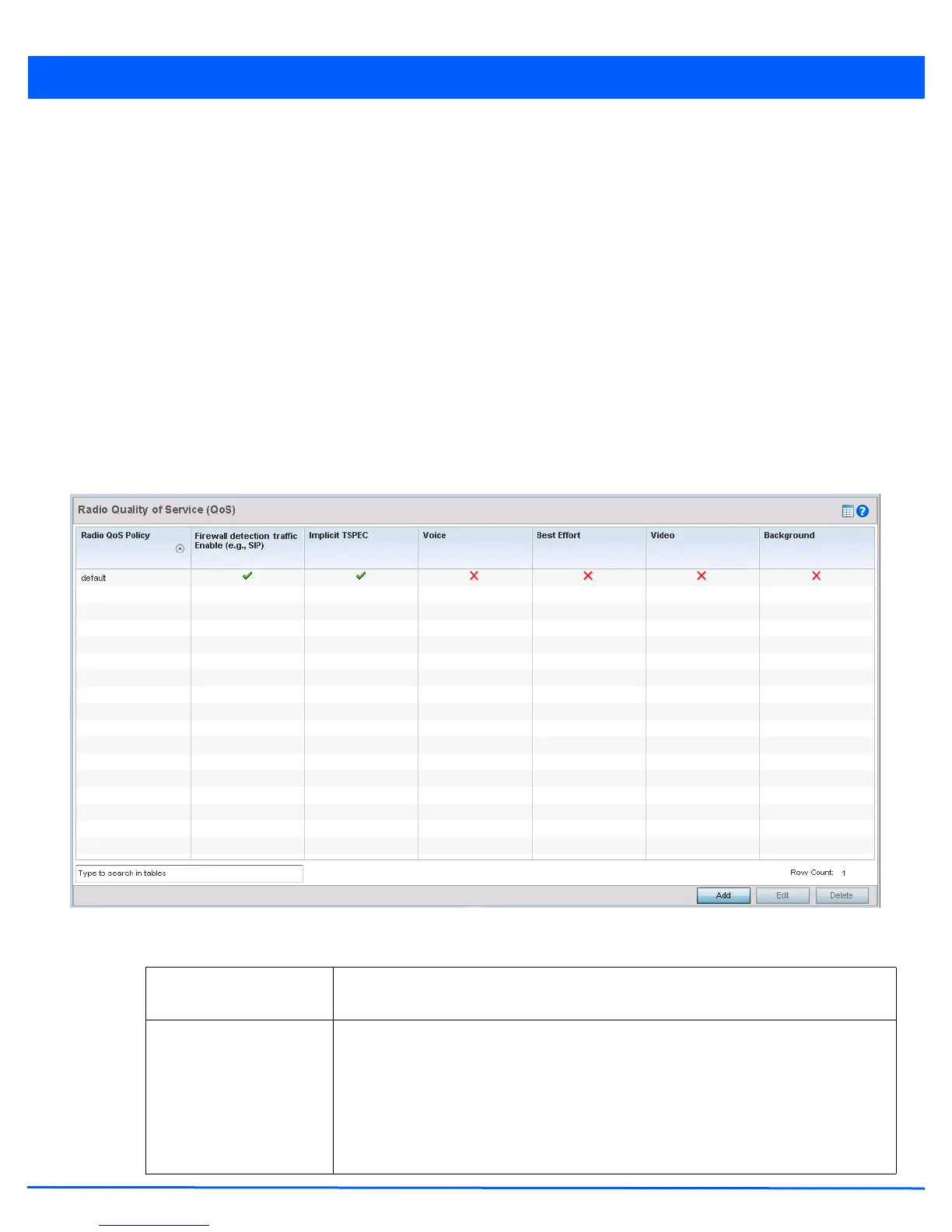 3. Select Radio QoS Policy to display a high level display of existing Radio QoS policies.