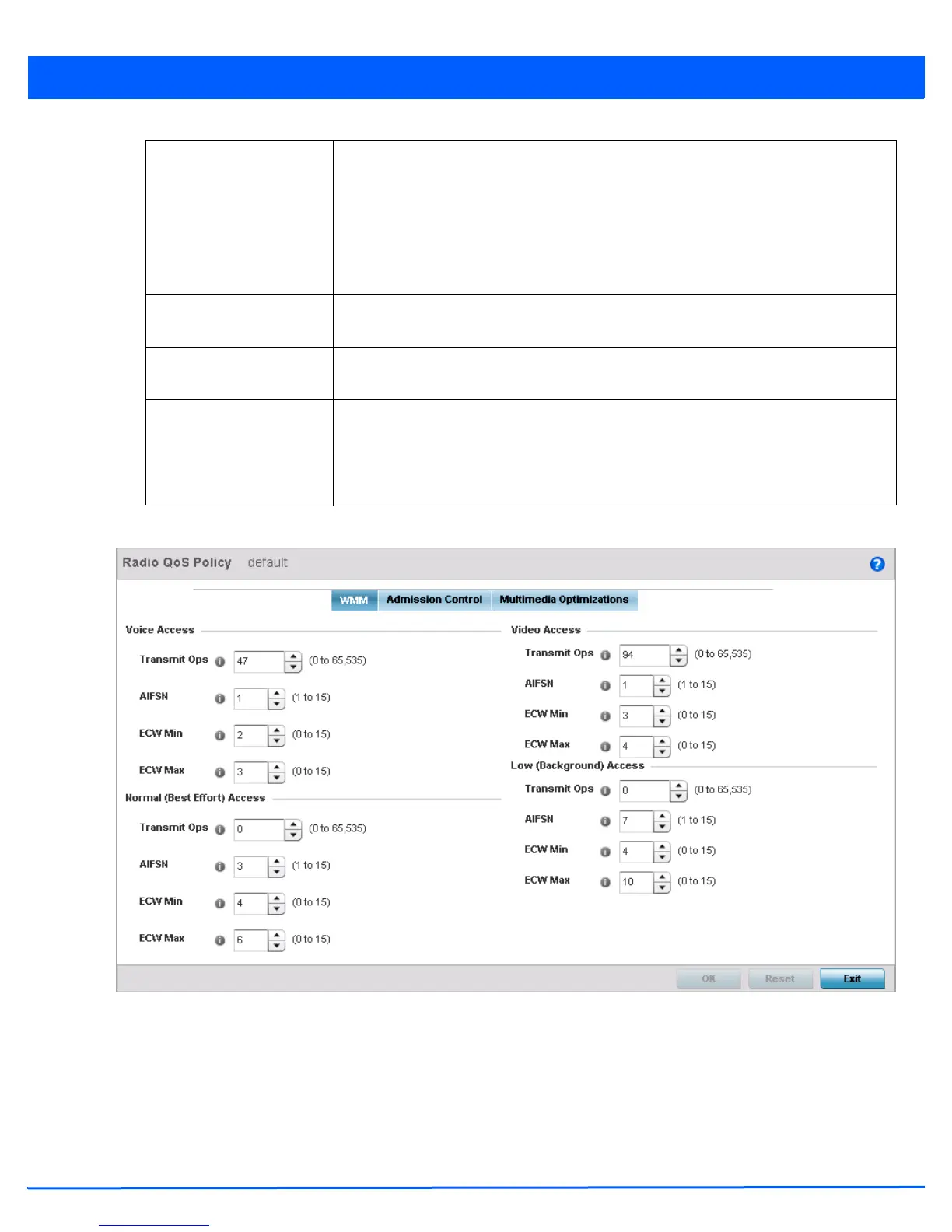 setting applies to just this radio’s QoS policy. When enabled, the access point simulates
