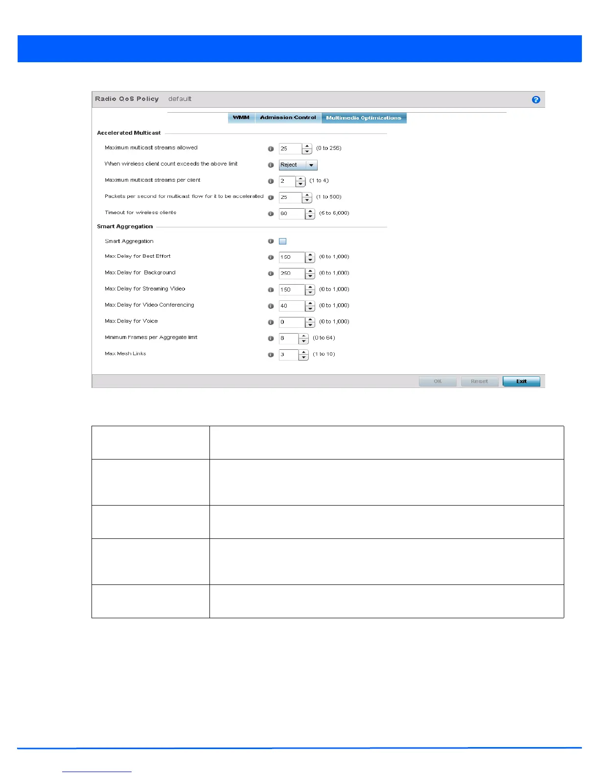 Figure 6-29 Radio QoS Policy screen - Multimedia Optimizations tab