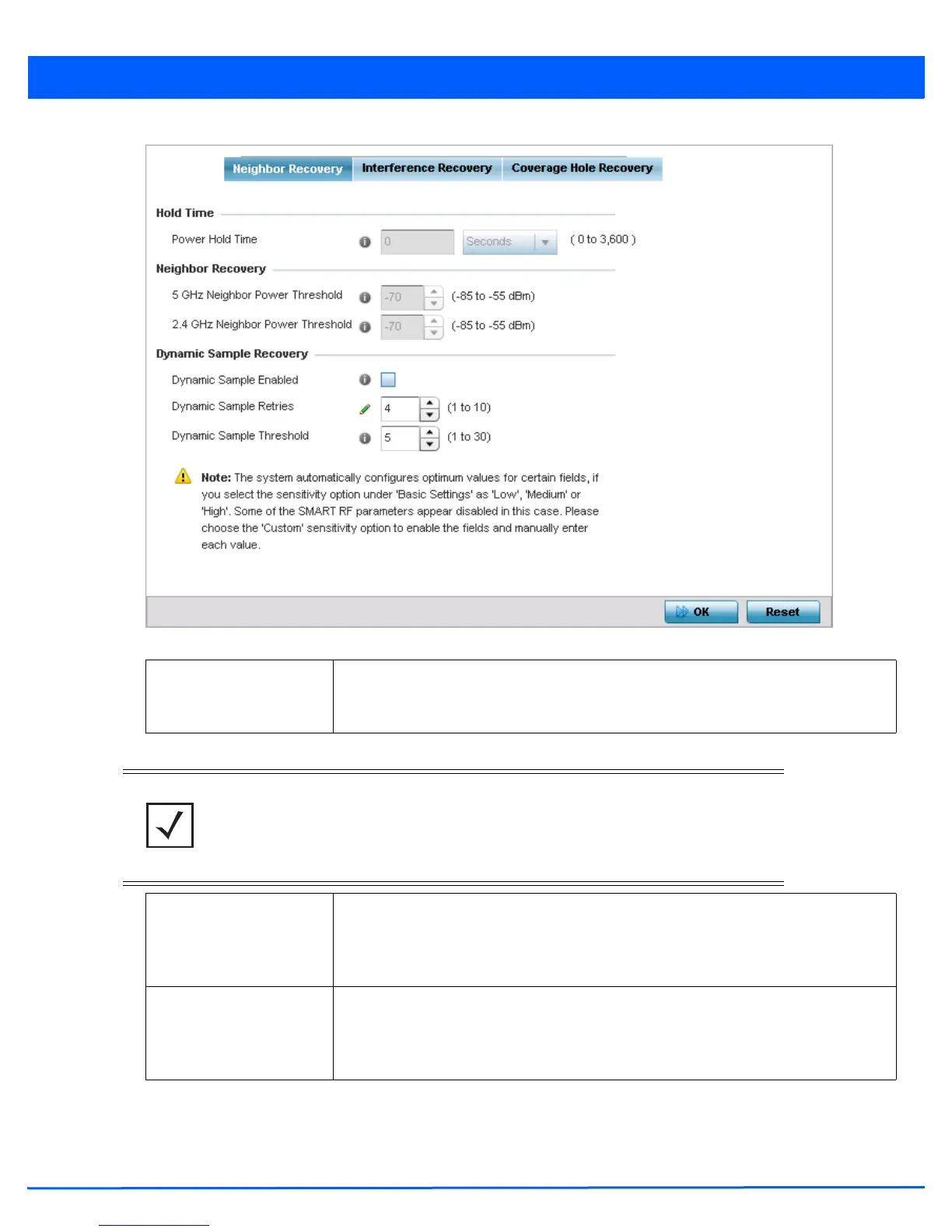 NOTE: The recovery parameters within the Neighbor Recovery, Interference and