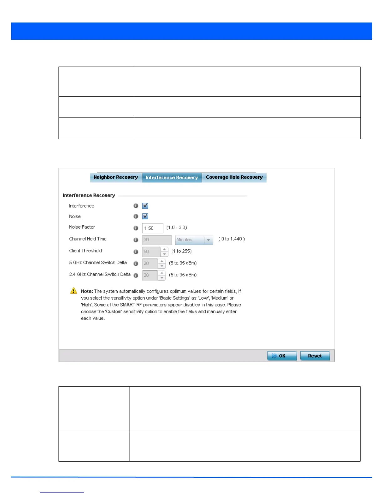 23. Select OK to update the Smart RF Neighbor Recovery settings. Select Reset to revert to the last saved configuration.