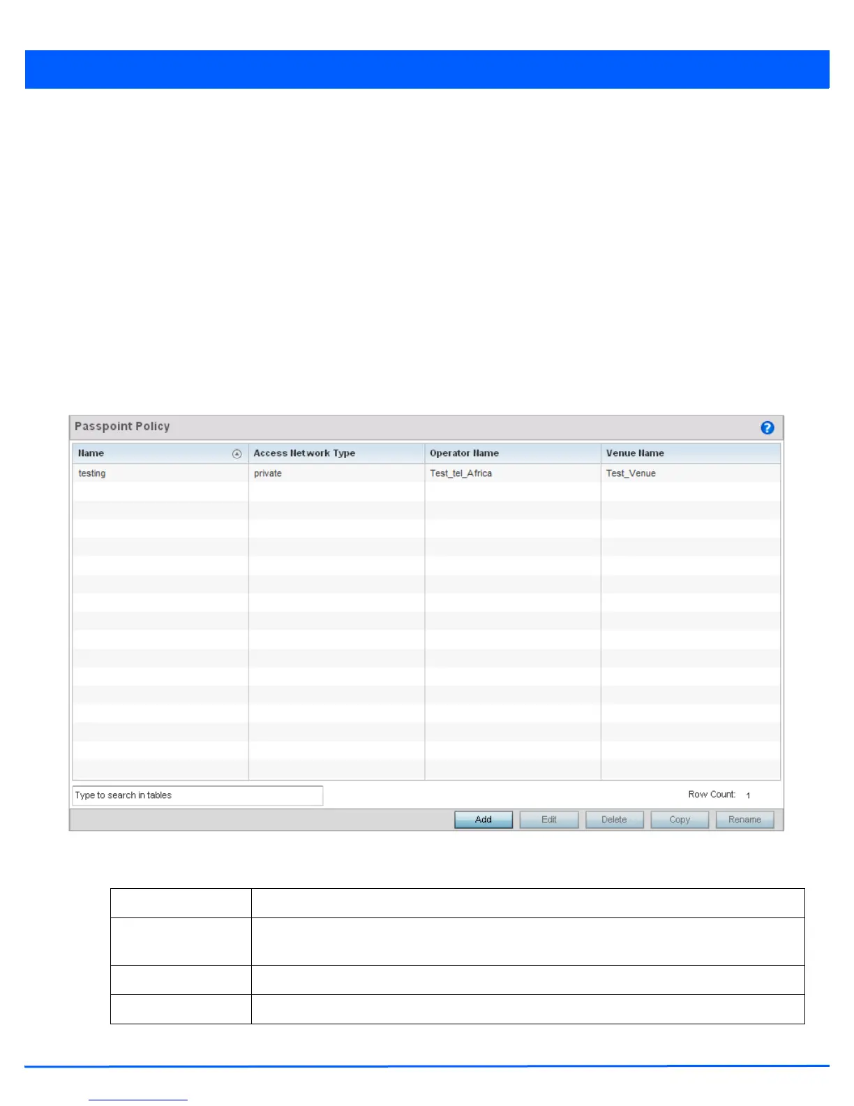 3. Select Passpoint Policy to display existing Passpoint policies.