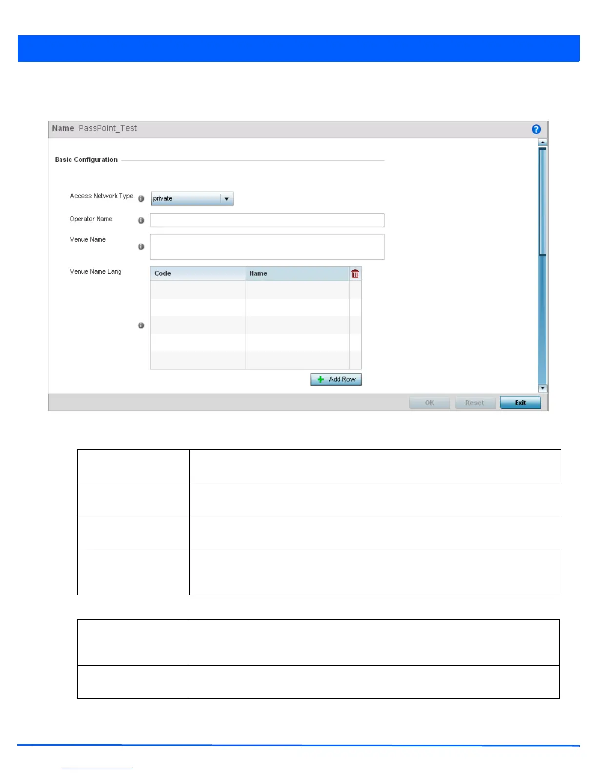 8. Select OK when completed to update the Passpoint policy settings. Select Reset to revert to the last saved configuration.