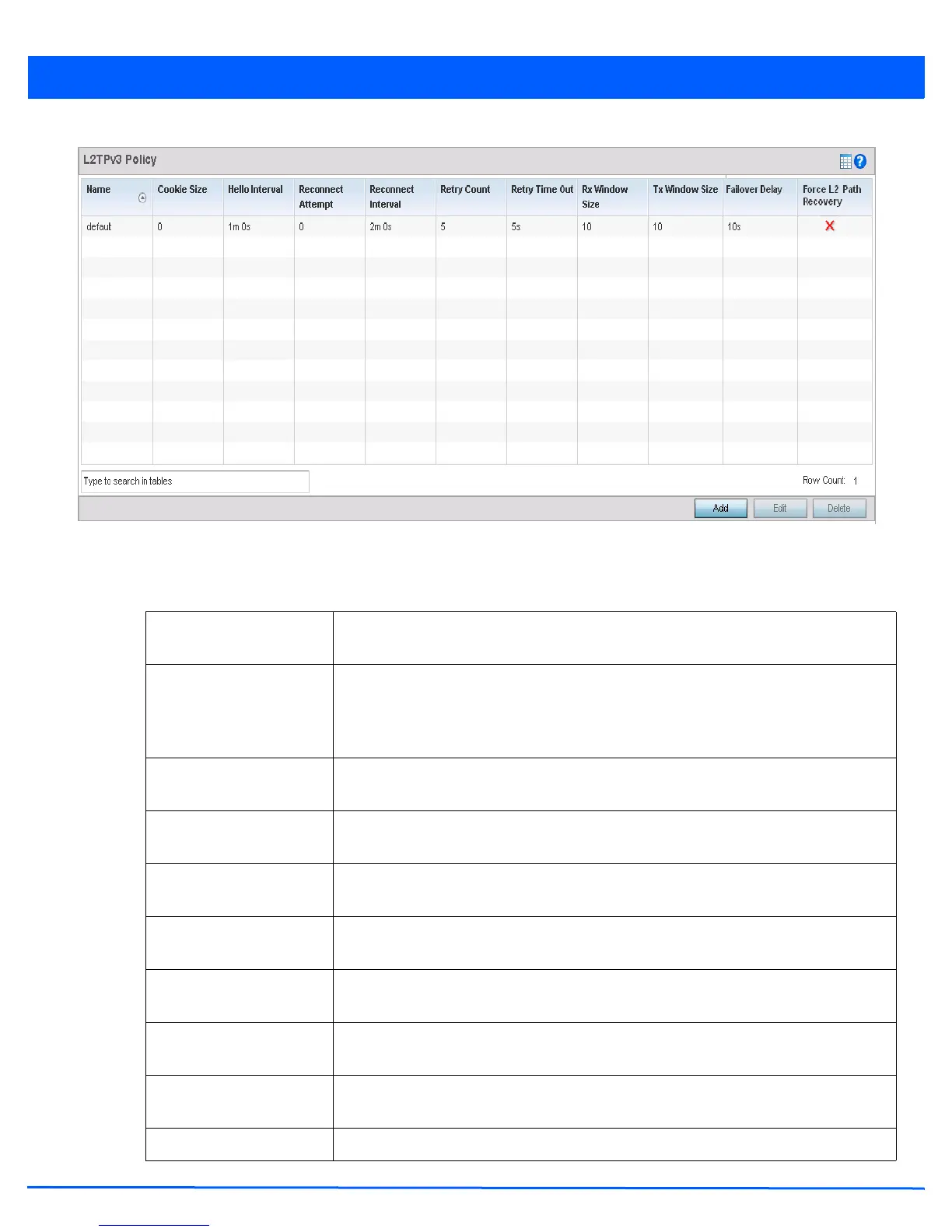 Hello Interval Displays each policy’s interval between L2TP V3 hello keep alive messages exchanged