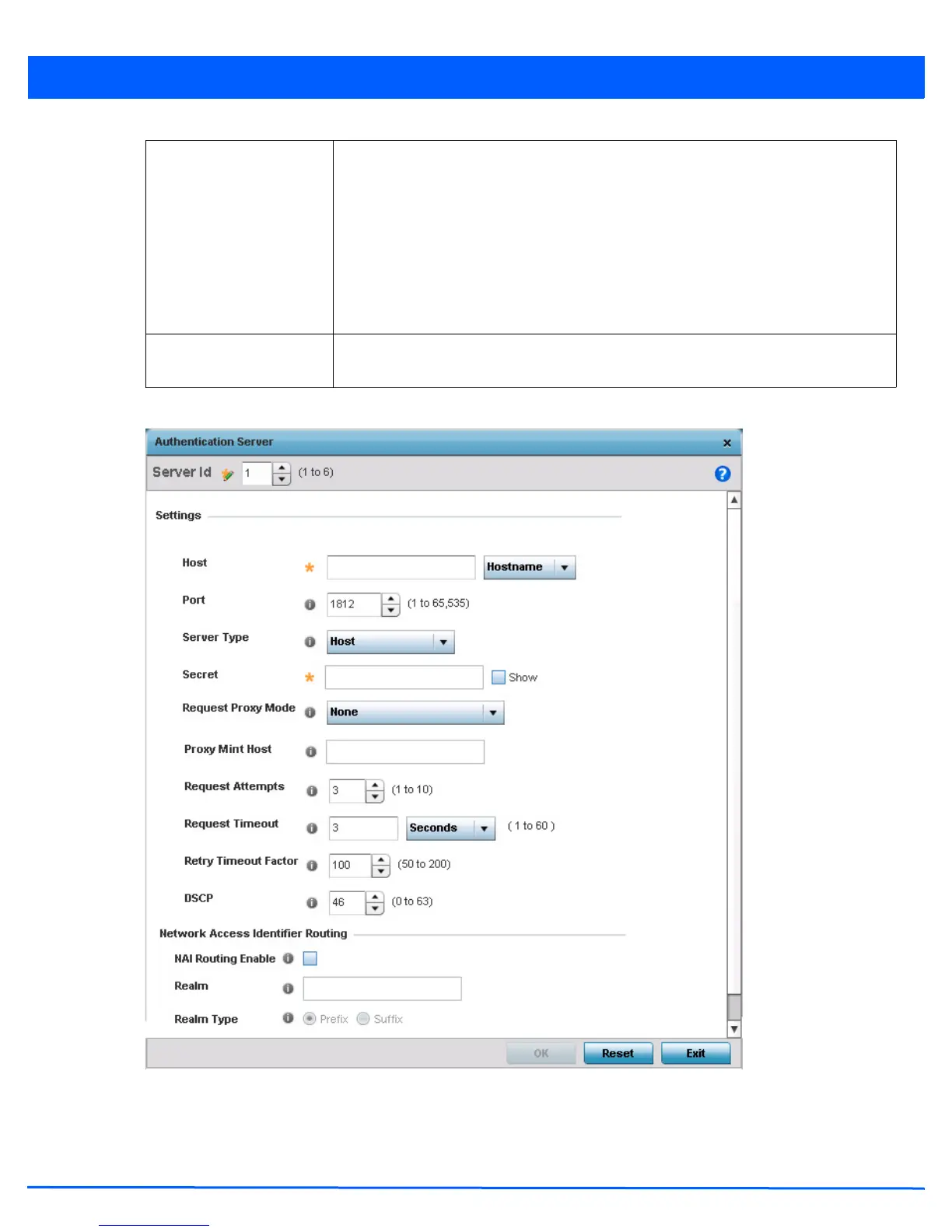 Figure 7-9 AAA Policy - RADIUS Authentication tab - Authentication Server screen