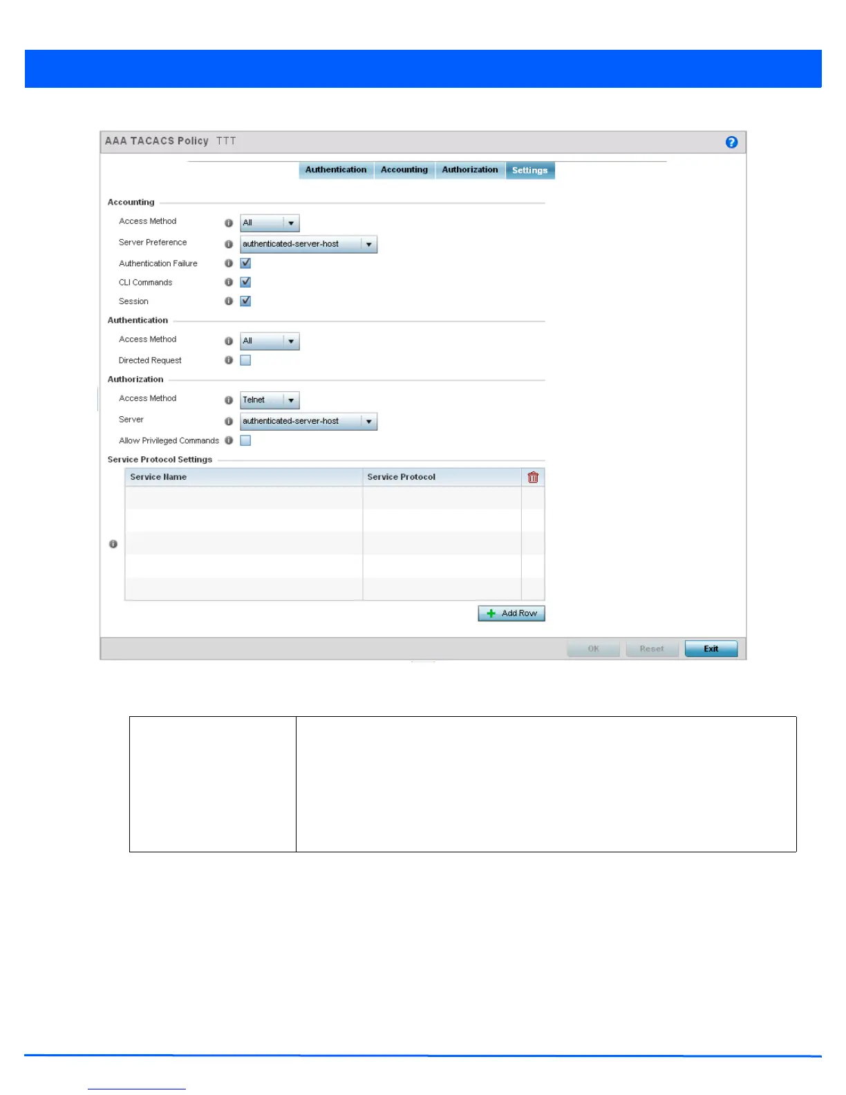 Figure 7-21 AAA TACACS Policy - Settings tab