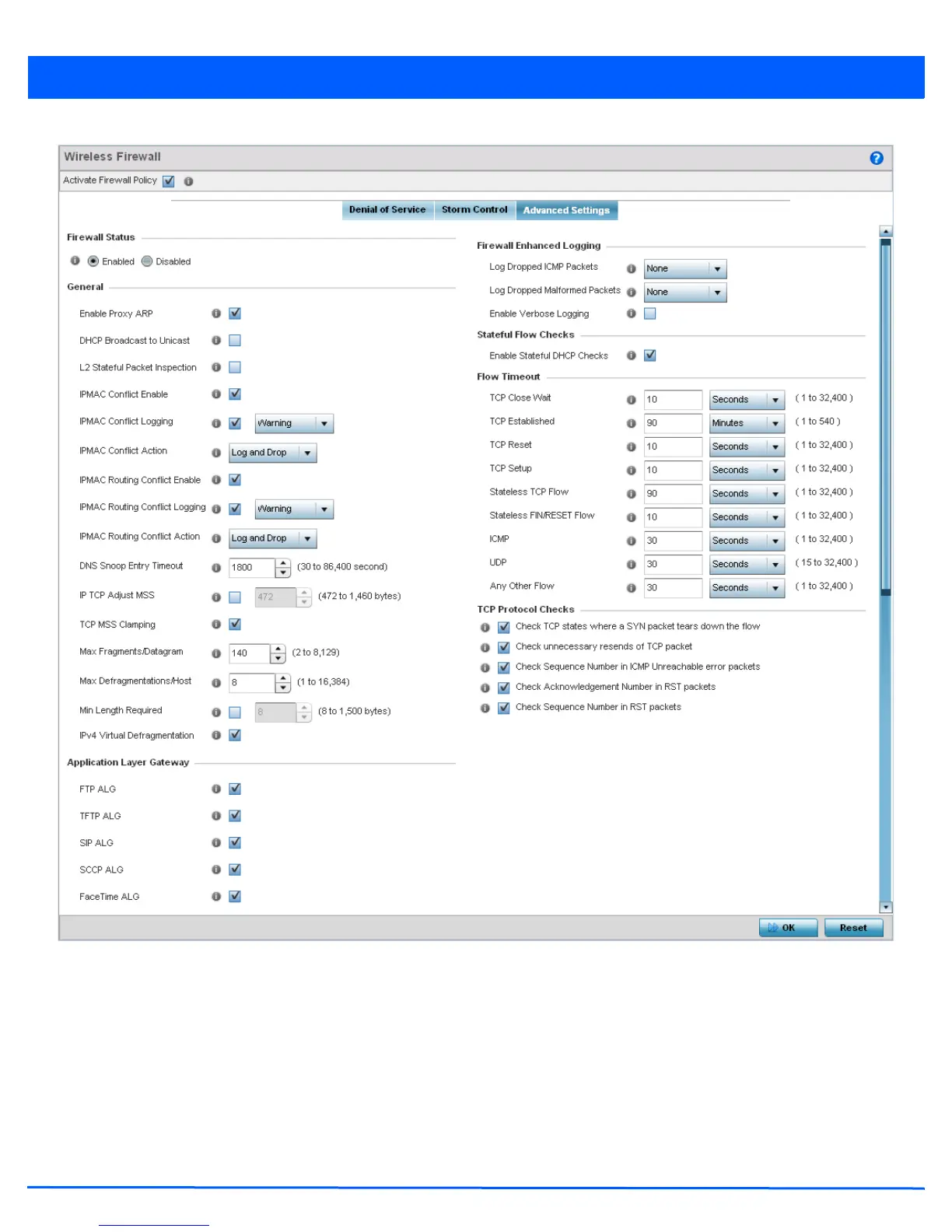 Figure 8-3 Wireless Firewall screen - Advanced Settings tab