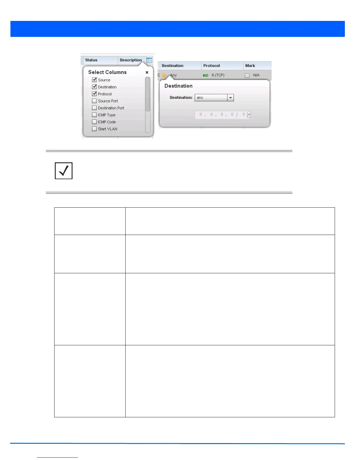 current settings adjusted by selecting that IP ACL’s column to display a pop-up to adjust
