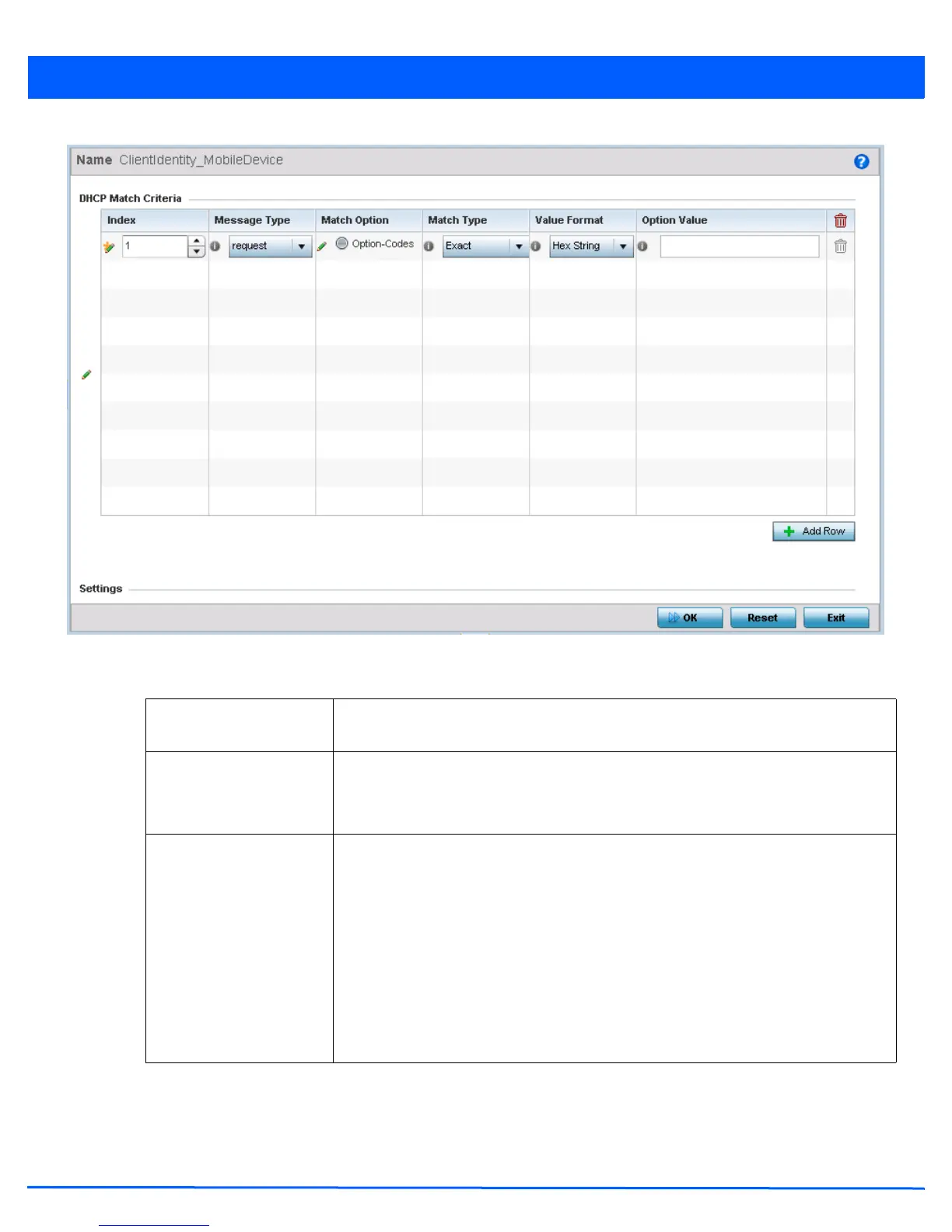 • Option – This indicates that a specific DHCP Option is used to identify the device. When