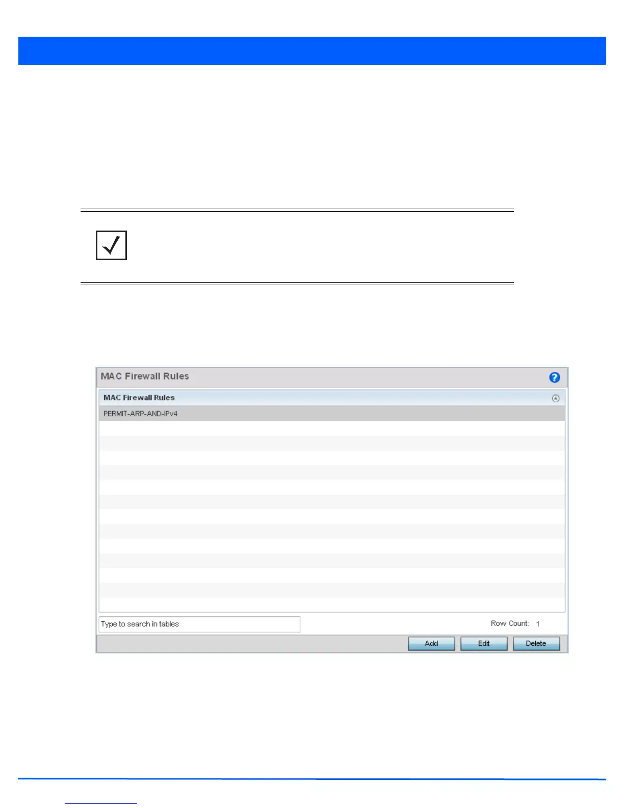 NOTE: Once defined, a set of MAC firewall rules must be applied to an interface to be a
