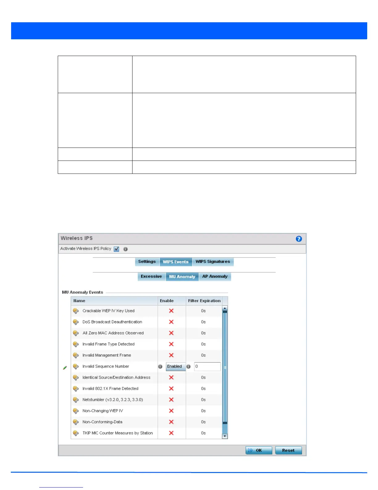 13. Select the MU Anomaly tab. Ensure the Activate Wireless IPS Policy option remains selected to enable the screen’s