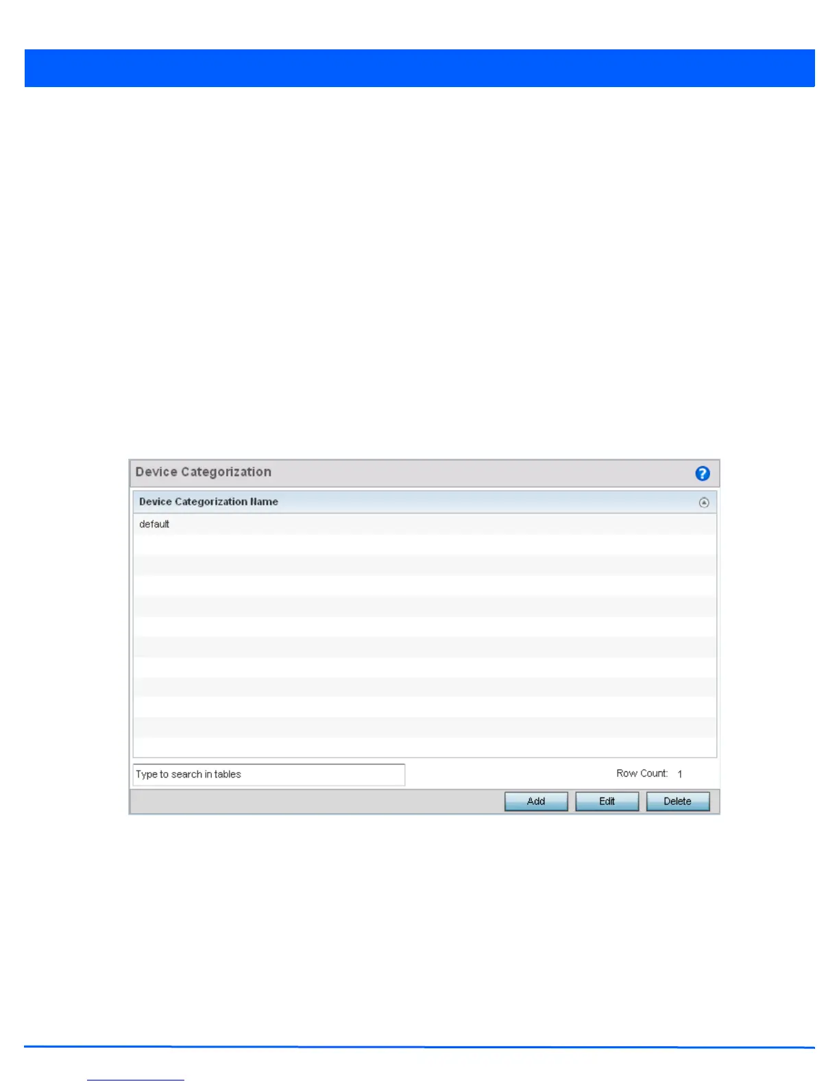 4. Select Add to create a new Device Categorization policy, Edit to modify the attributes of a selected policy or Delete to