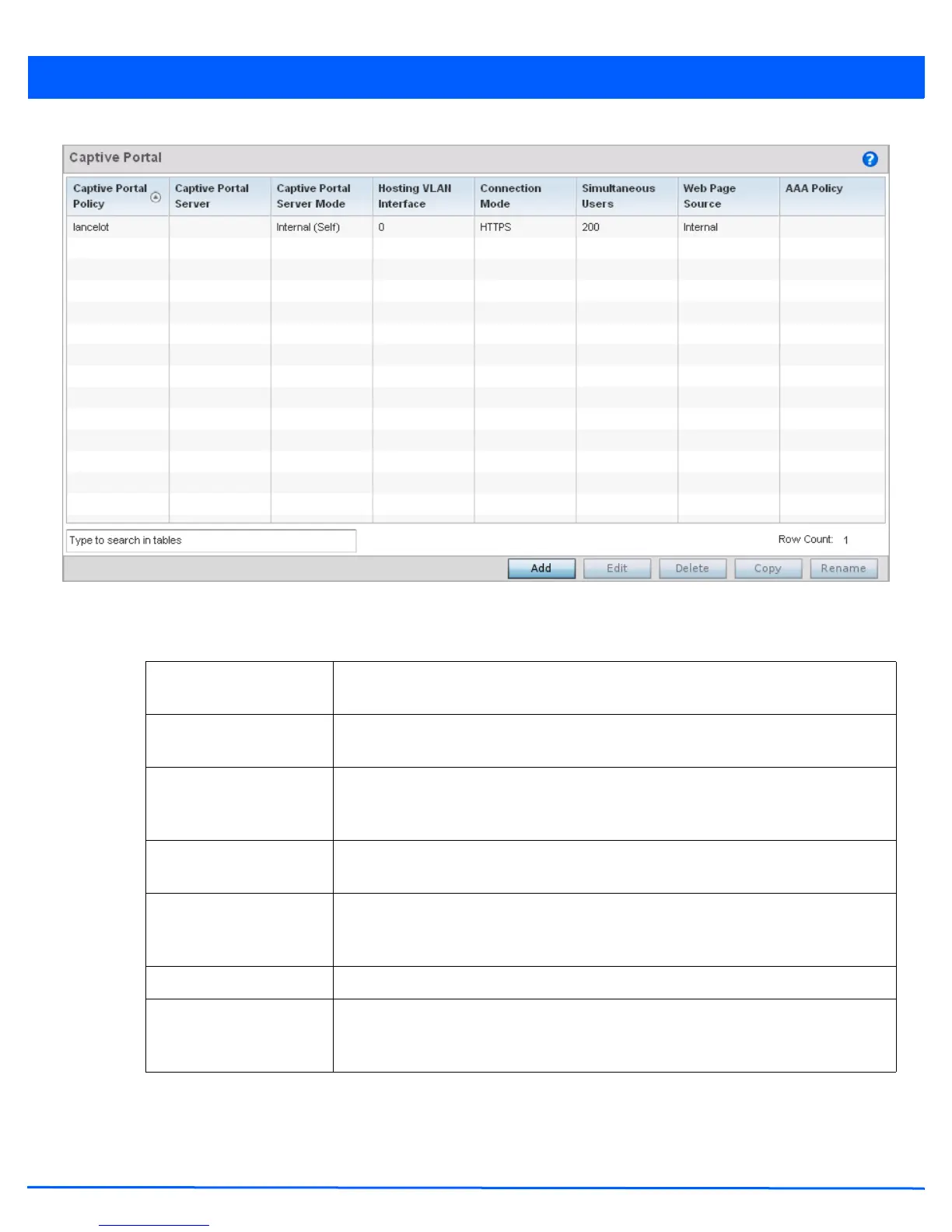 4. Refer to the following captive portal policy configurations to determine whether a new policy requires creation, or an