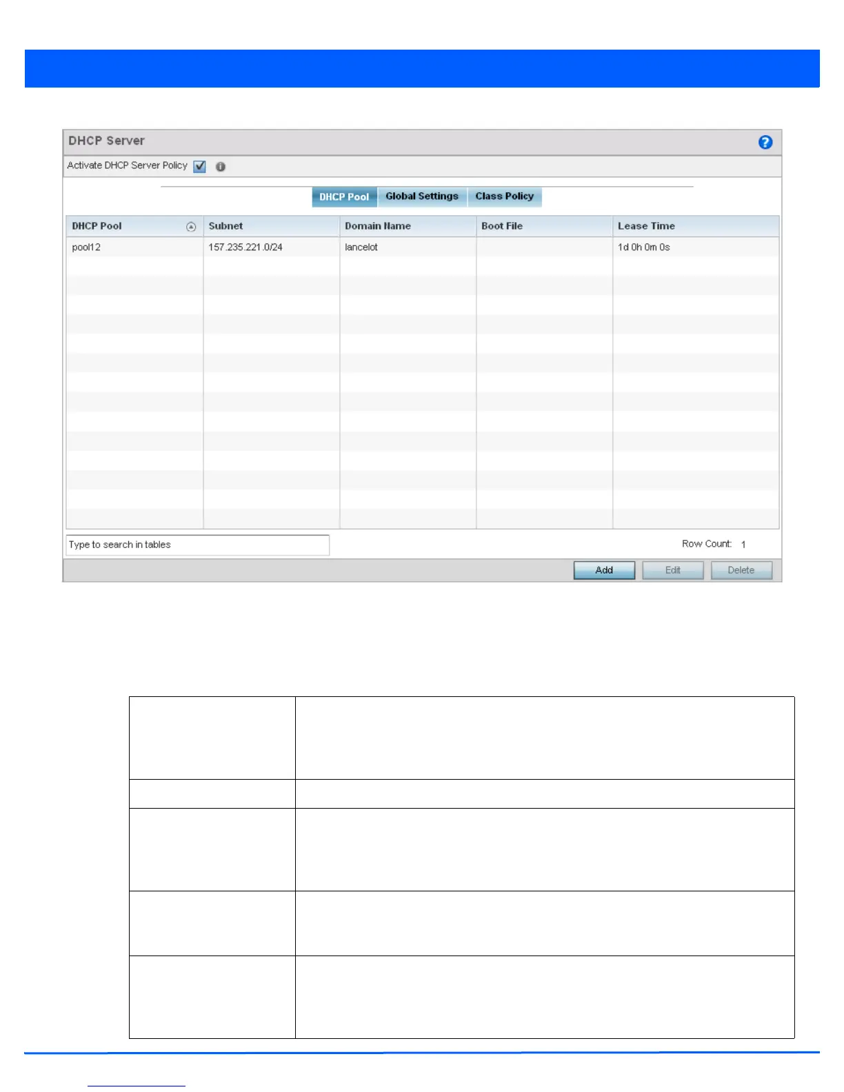 DHCP Pool Displays the name assigned to the network pool when created. The DHCP pool name