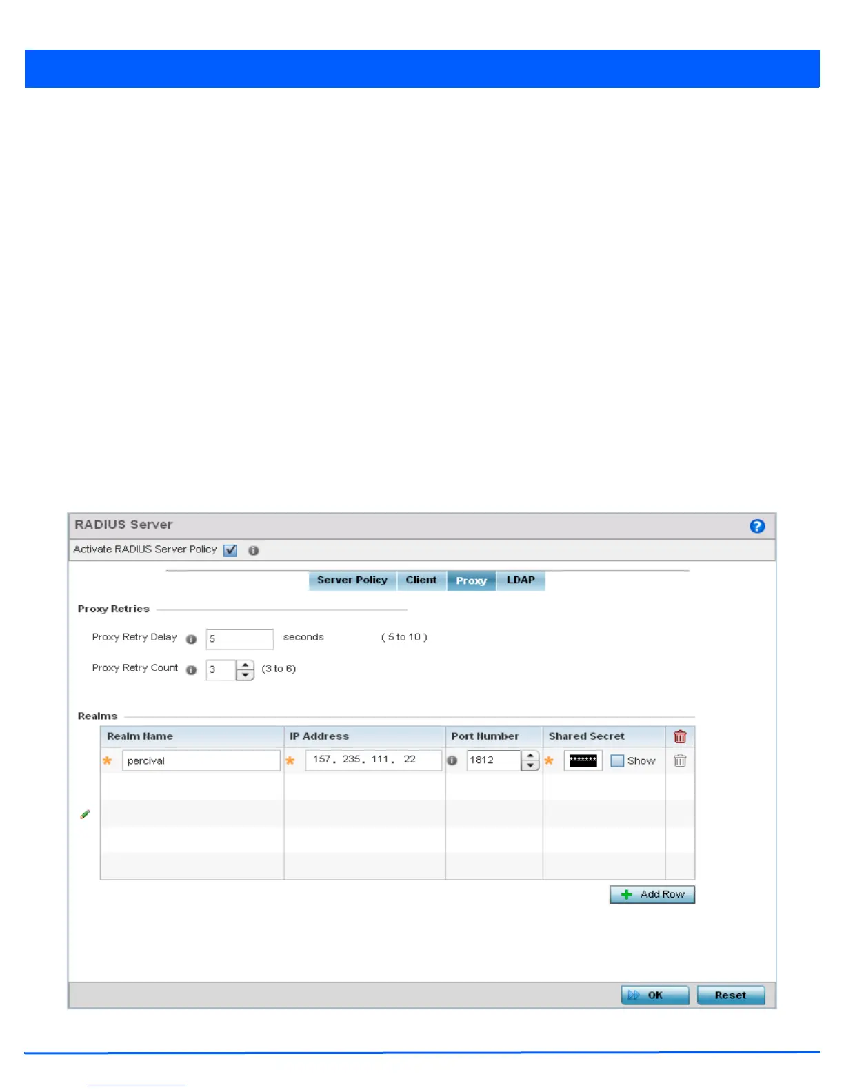 Figure 9-23 RADIUS Server Policy screen - Proxy tab