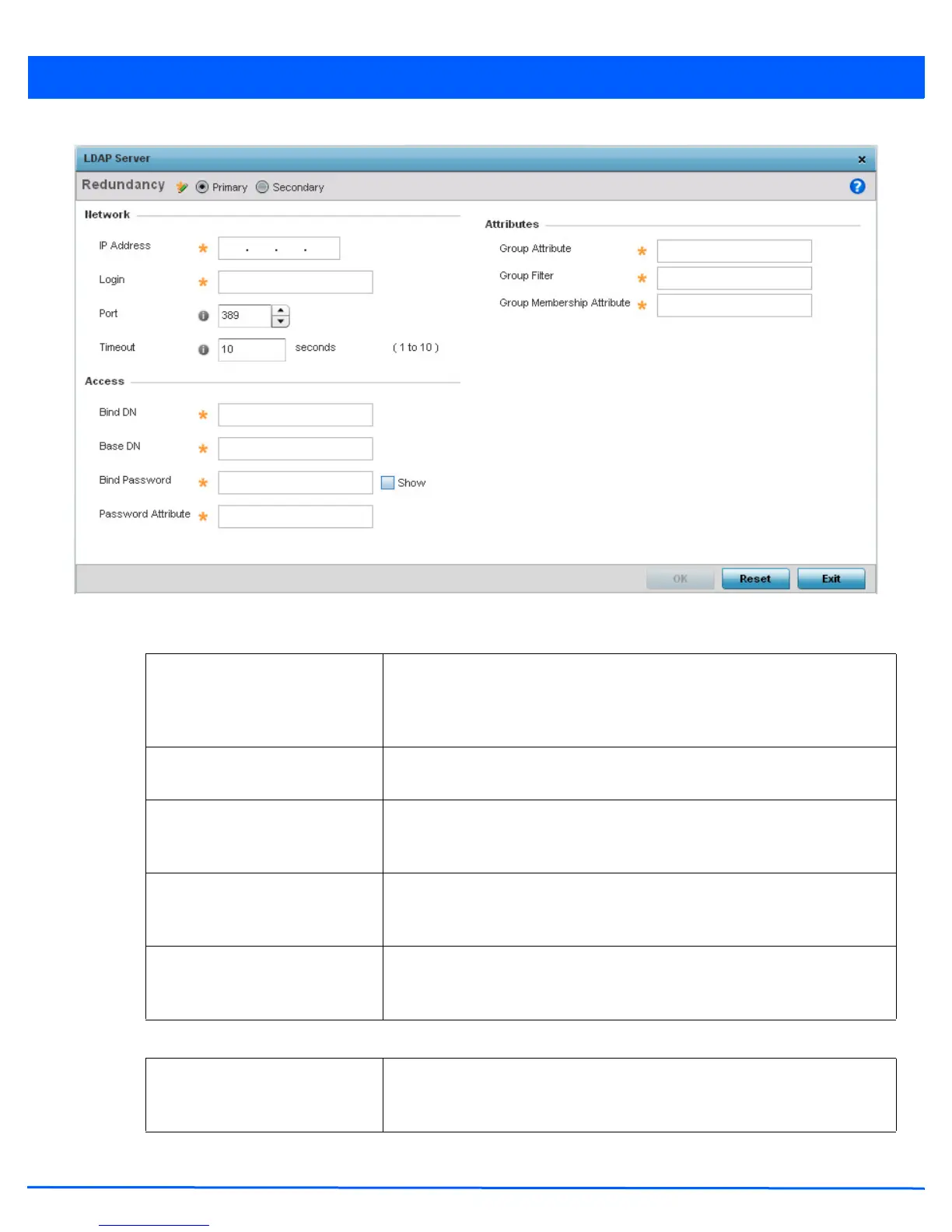 Redundancy Define whether this LDAP server is a primary or secondary server resource.