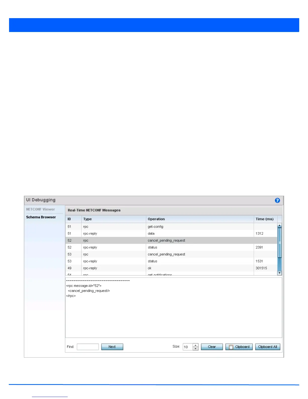 Figure 11-5 UI Debugging screen - NETCONF Viewer