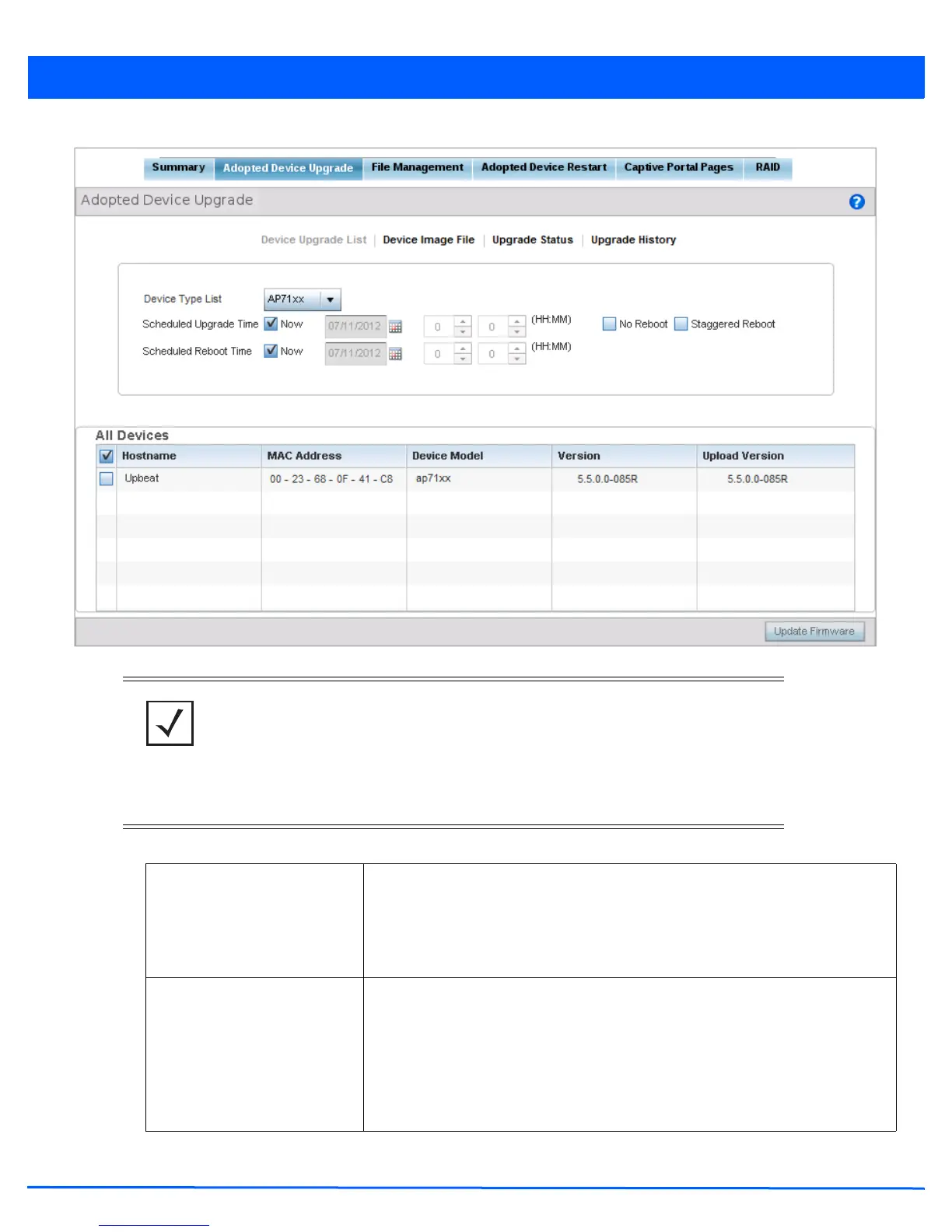 NOTE: If selecting the Device Upgrade screen from the RF Domain level of the UI, there
