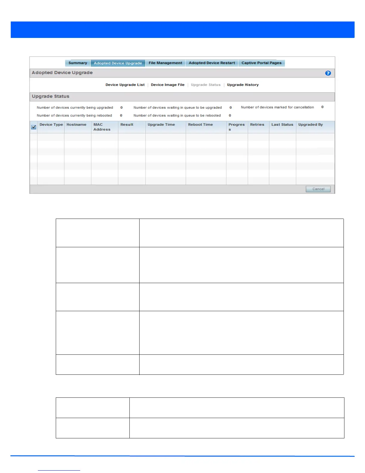 Hostname Lists the factory encoded MAC address of a device either currently upgrading or in the