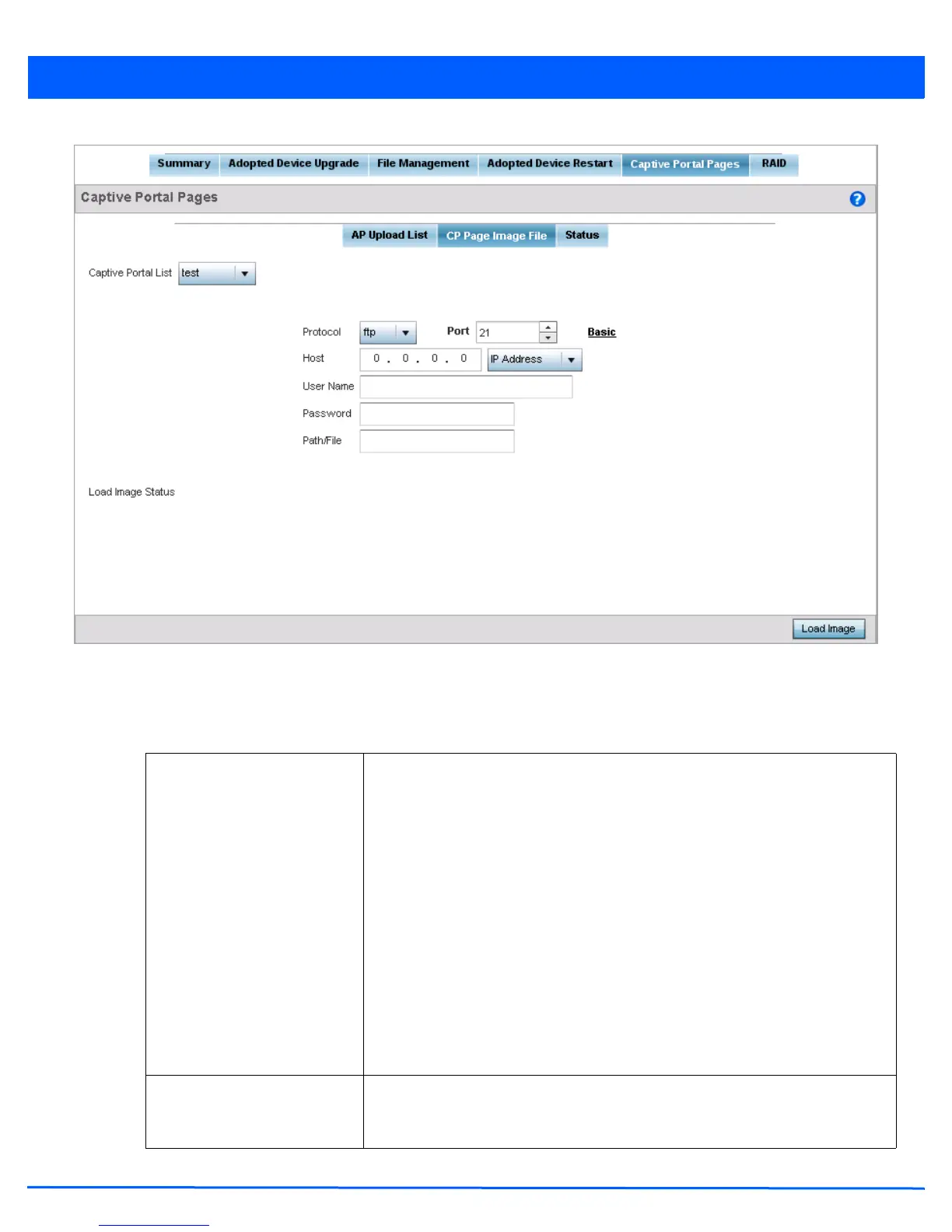Figure 12-36 Devices Captive Portal Pages - CP Page Image File screen