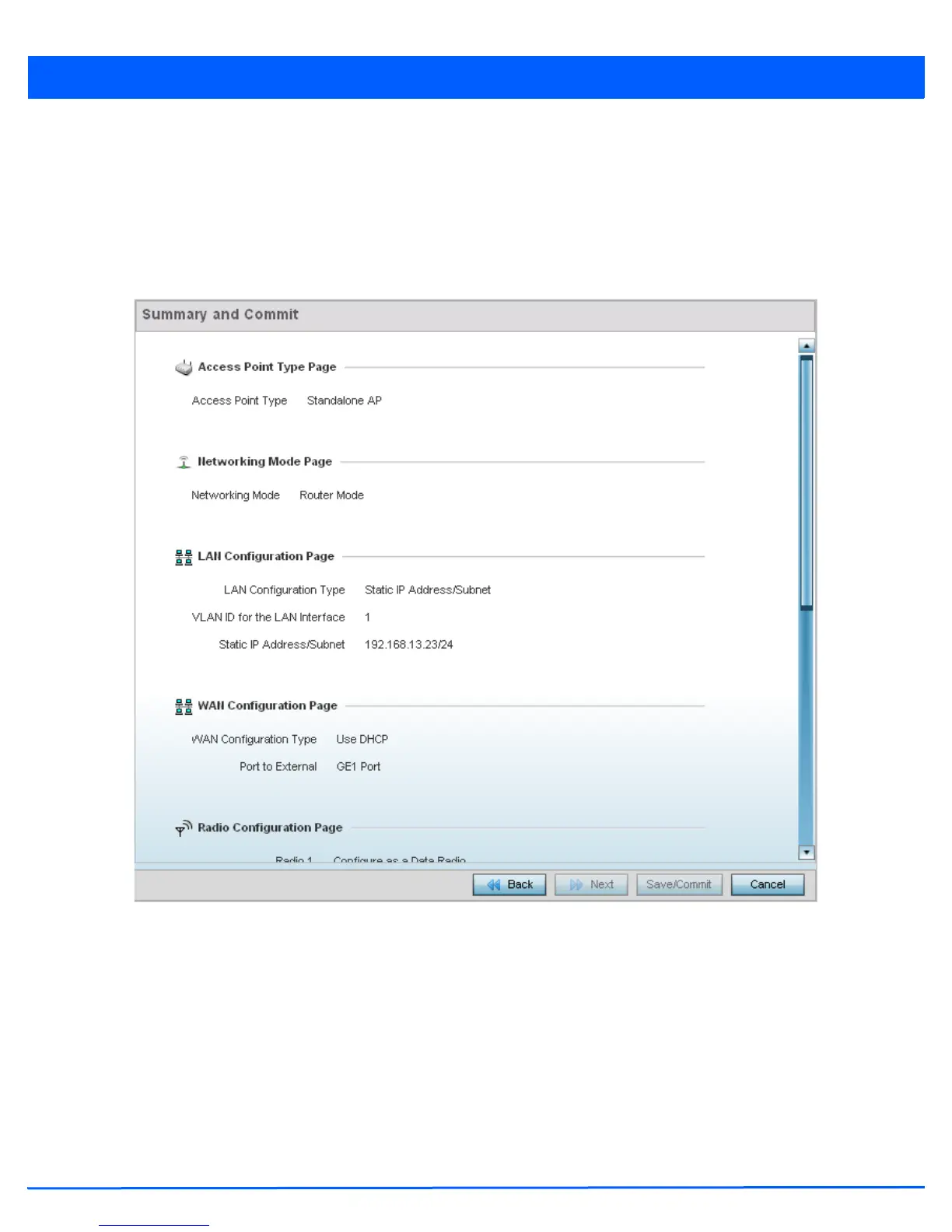 If the configuration displays as intended, select Save/Commit to implement these settings to the access point. If additional