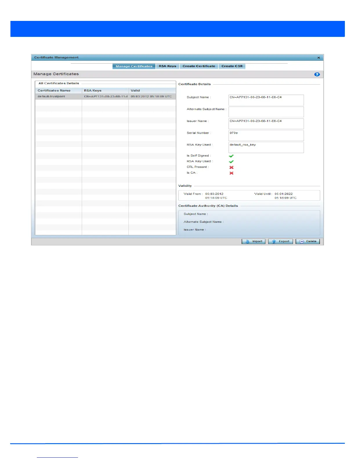 3. Refer to the Certificate Details to review certificate properties, self-signed credentials, validity period and CA