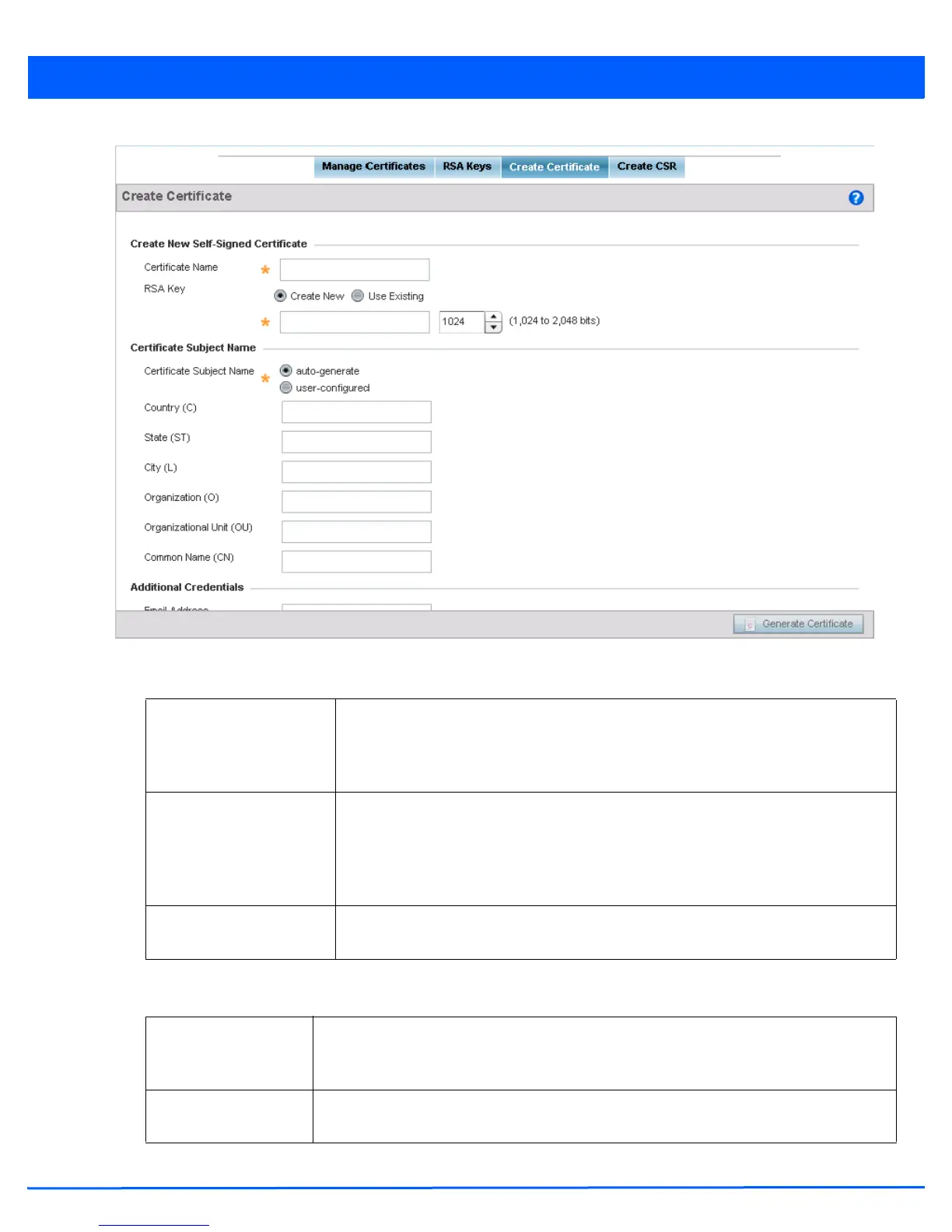 Certificate Name Enter the 32 character maximum name assigned to identify the name of the trustpoint
