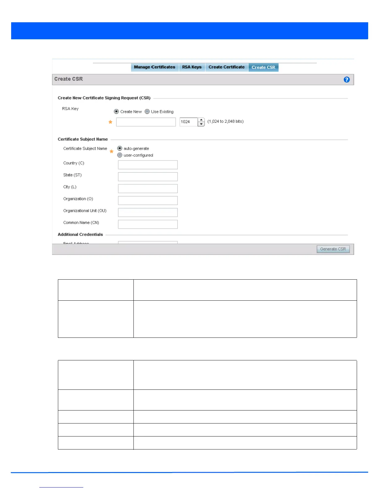 4. Define the following configuration parameters required to Create New Certificate Signing Request (CSR):