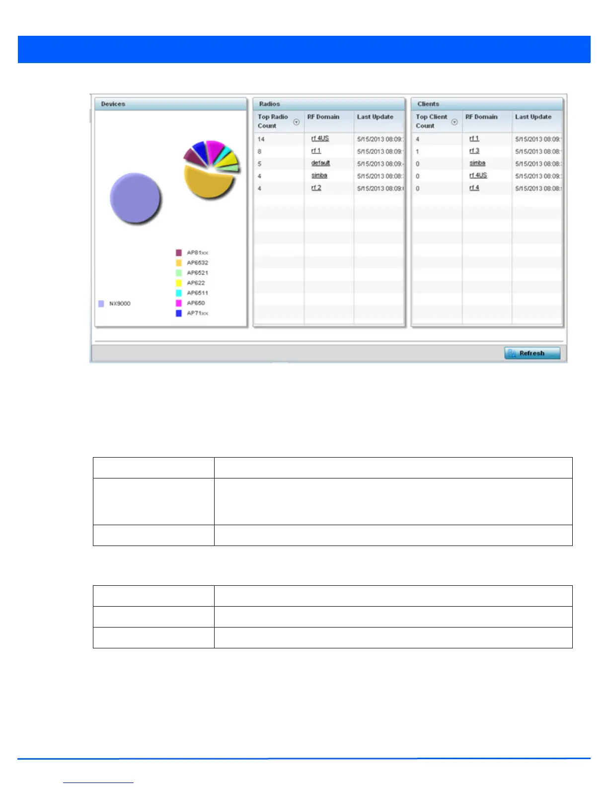 top 5 RF Domains in terms of radio count. The Total Radios value is the total number of radios in this system.