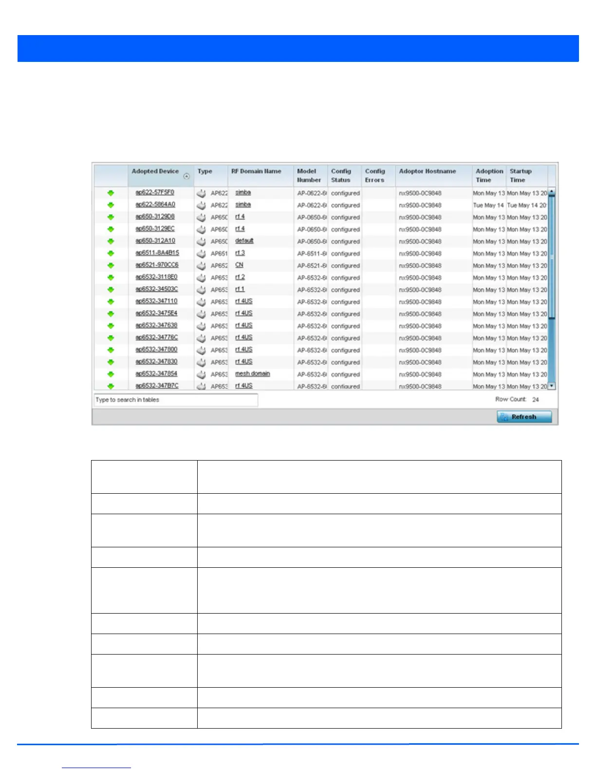 Model Number Lists the model number of each AP that’s been adopted since this screen was last refreshed.