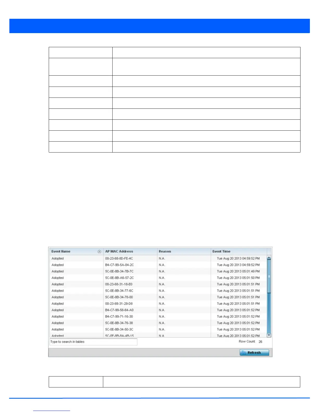 Event Name Displays the adoption status of each listed access point as either adopted or un-adopted.