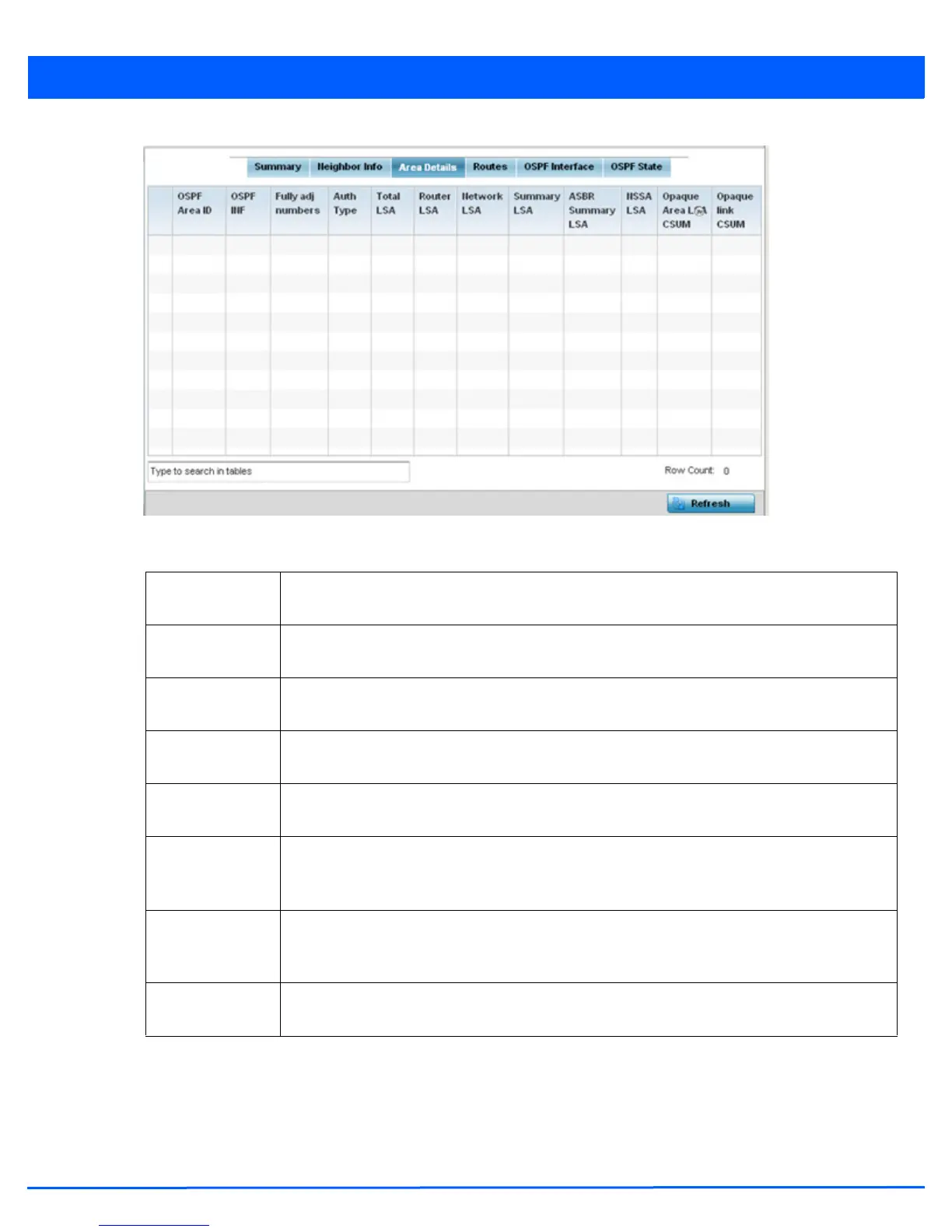 Router LSA Lists the Link State Advertisements of the router supporting each listed area ID. The router LSA