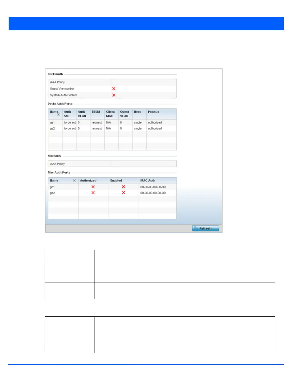 Auth VLAN Lists the virtual interface utilized post authentication.