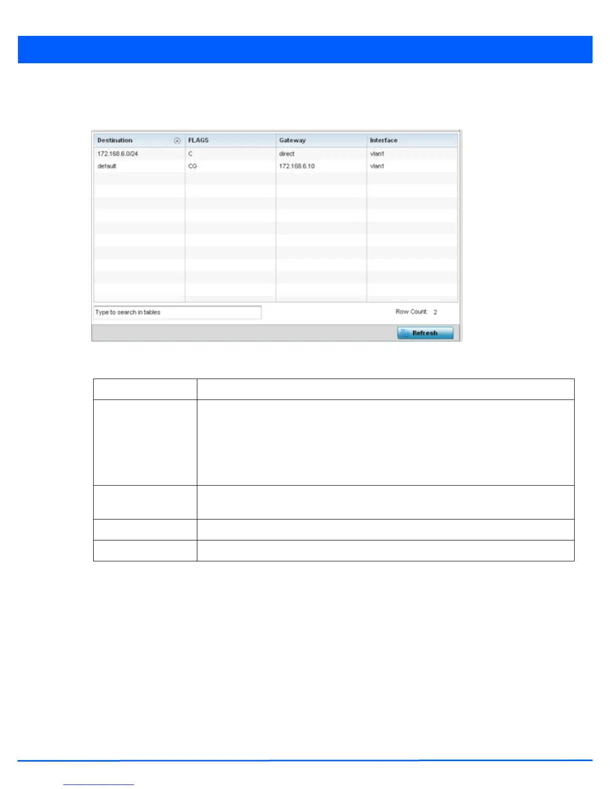 destination host is not directly connected to the forwarding host. Possible flags include U