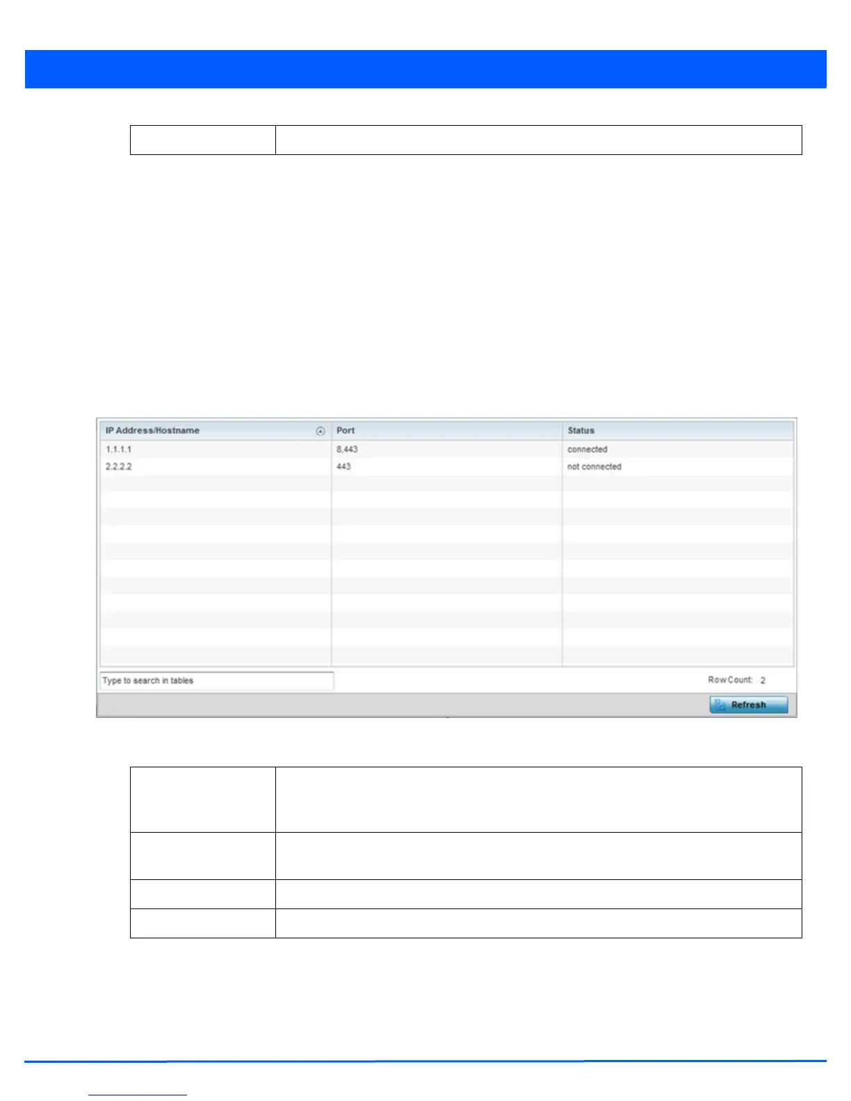 Displays a list of sensor server IP addresses or administrator assigned hostnames. These are