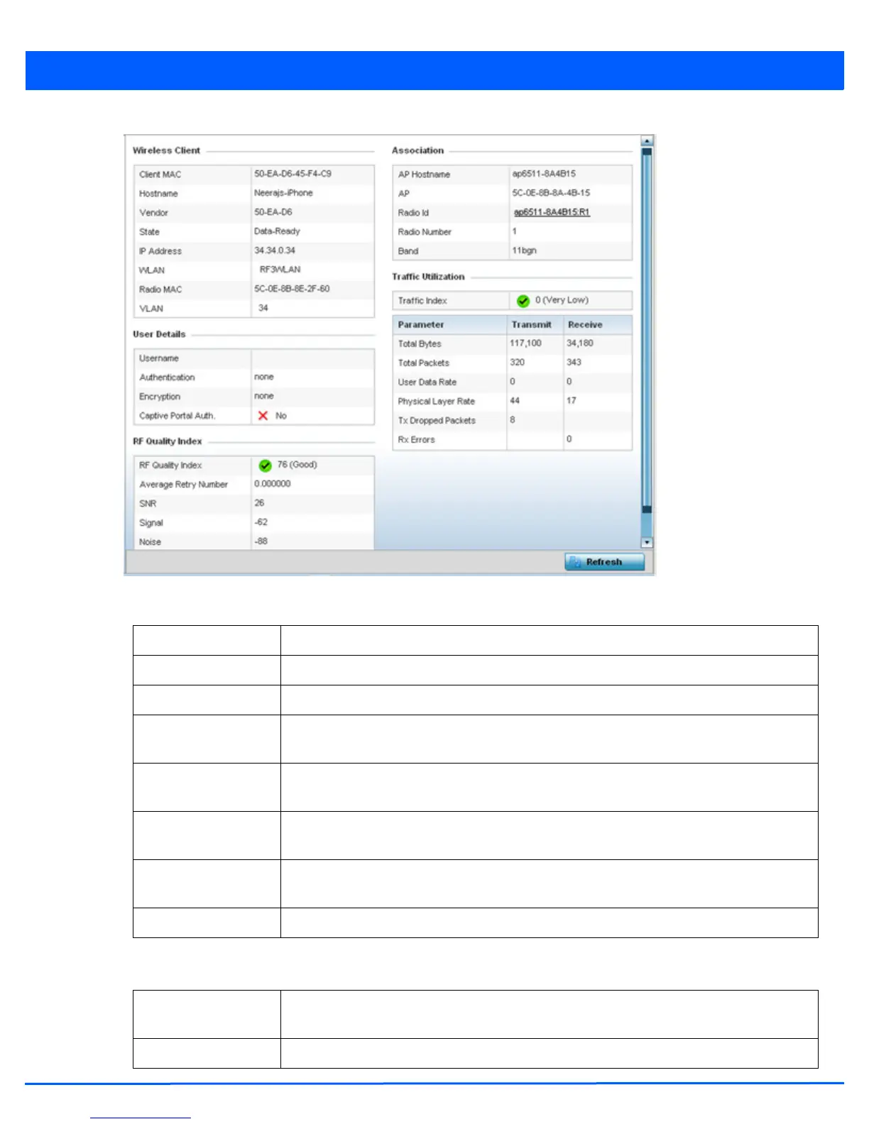 Vendor Displays the vendor name (manufacturer) of the wireless client.