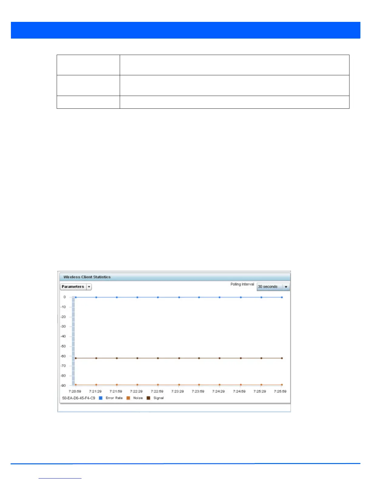 4. Use the Parameters drop down menu to define from 1- 3 variables assessing client signal noise, transmit or receive values.