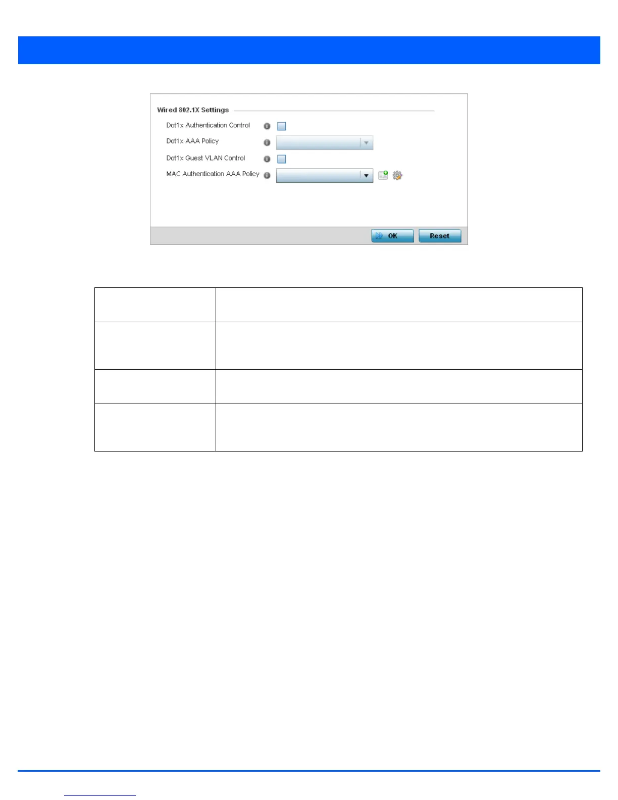 6. Select OK to save the changes to the 802.1x configuration. Select Reset to revert to the last saved configuration.
