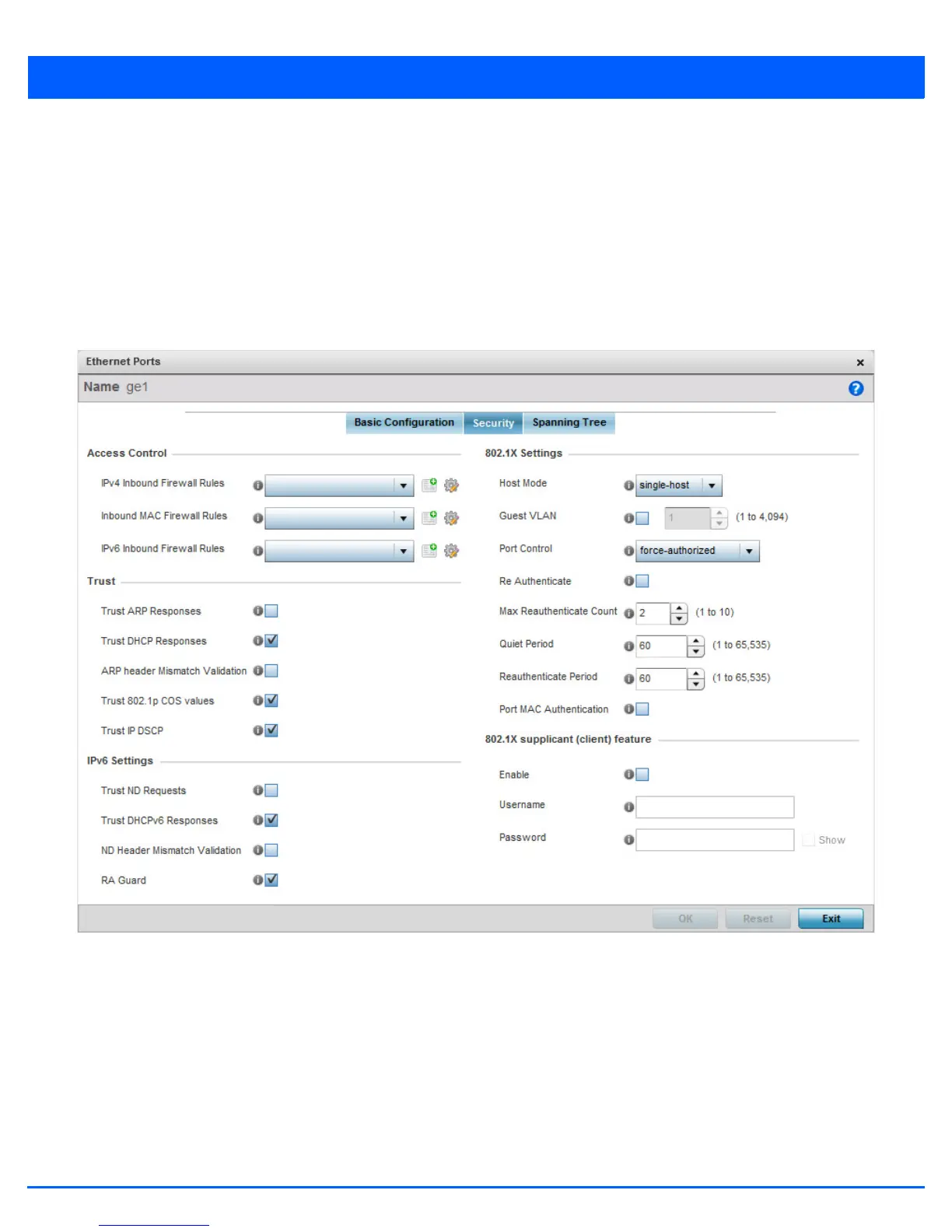 12. Select OK to save the changes made to the Ethernet Port Basic Configuration. Select Reset to revert to the last saved