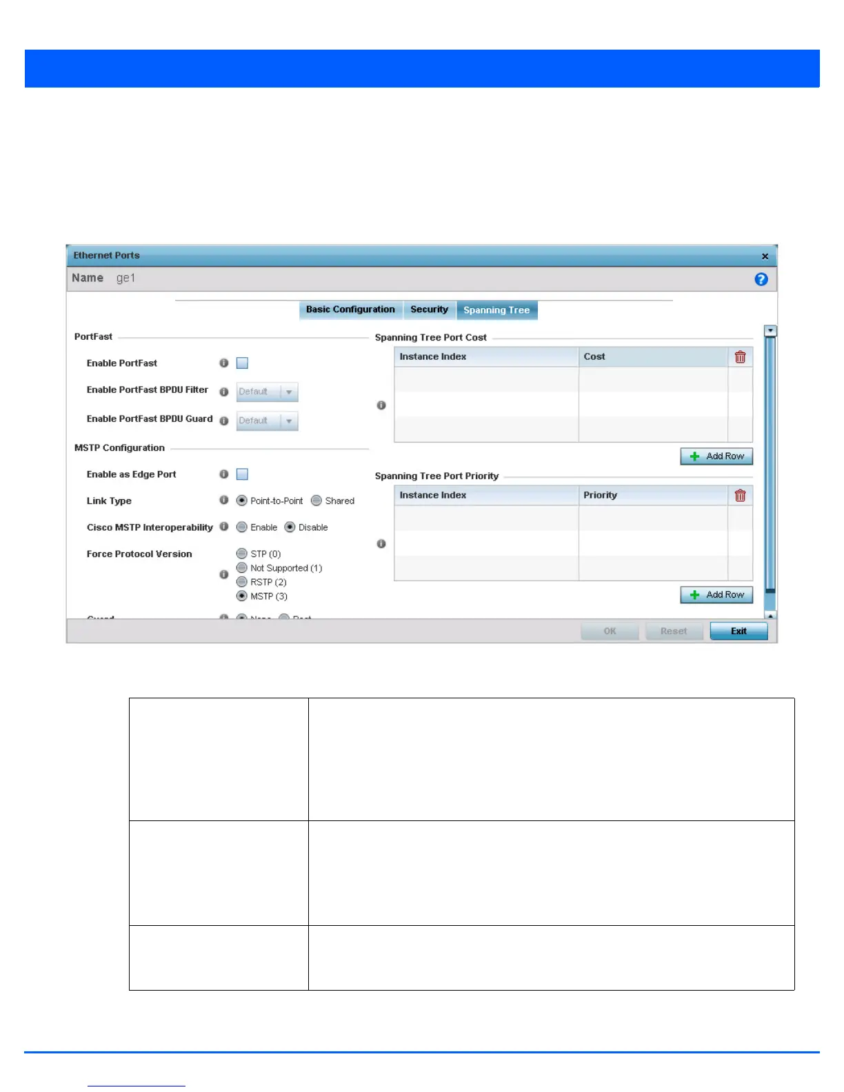 Figure 5-16 Ethernet Ports - Spanning Tree tab