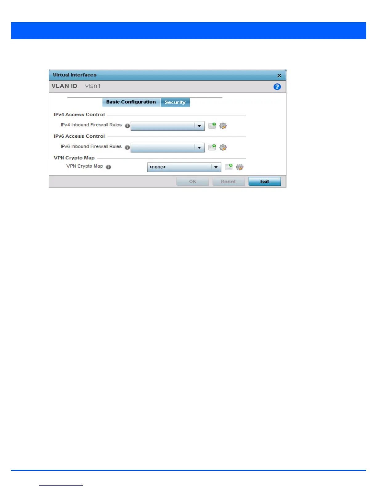 34. Use the VPN Crypto Map drop-down menu to select and assign a VPN crypto map entry to this virtual interface. The VPN