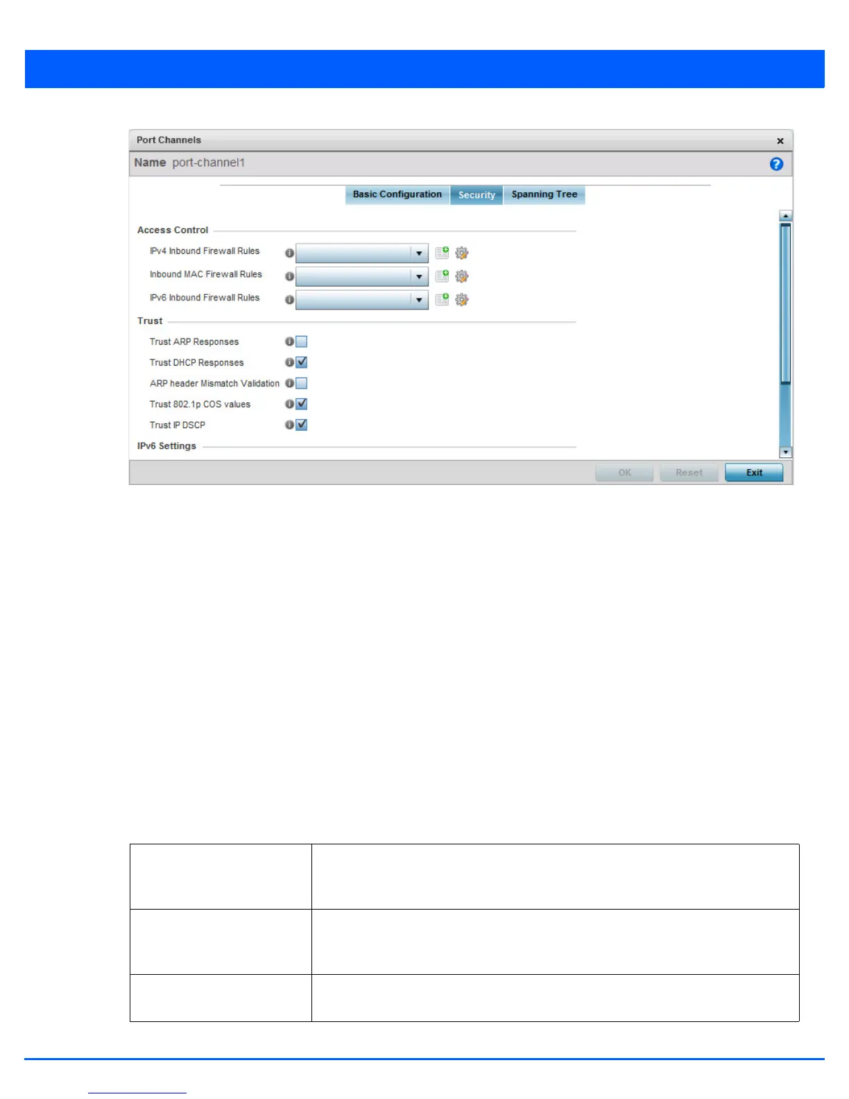 Trust ARP Responses Select this option to enable ARP trust on this port channel. ARP packets received on this