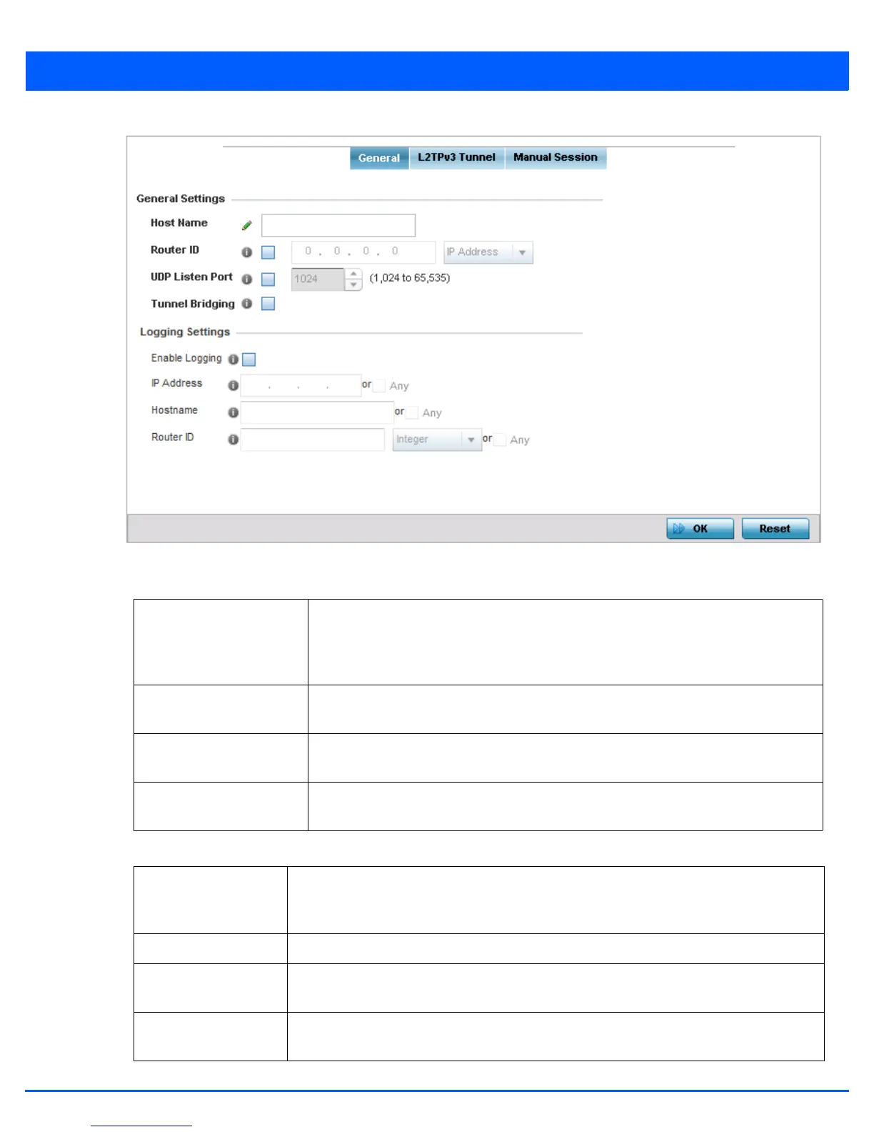 6. Set the following Logging Settings for a L2TPv3 profile configuration: