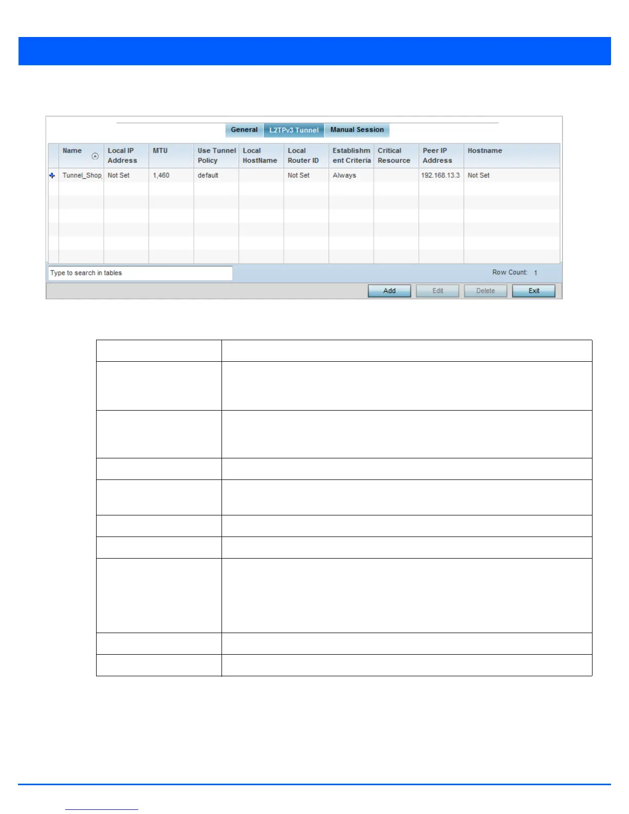9. Either select Add to create a new L2TPv3 tunnel configuration, Edit to modify an existing tunnel configuration or Delete