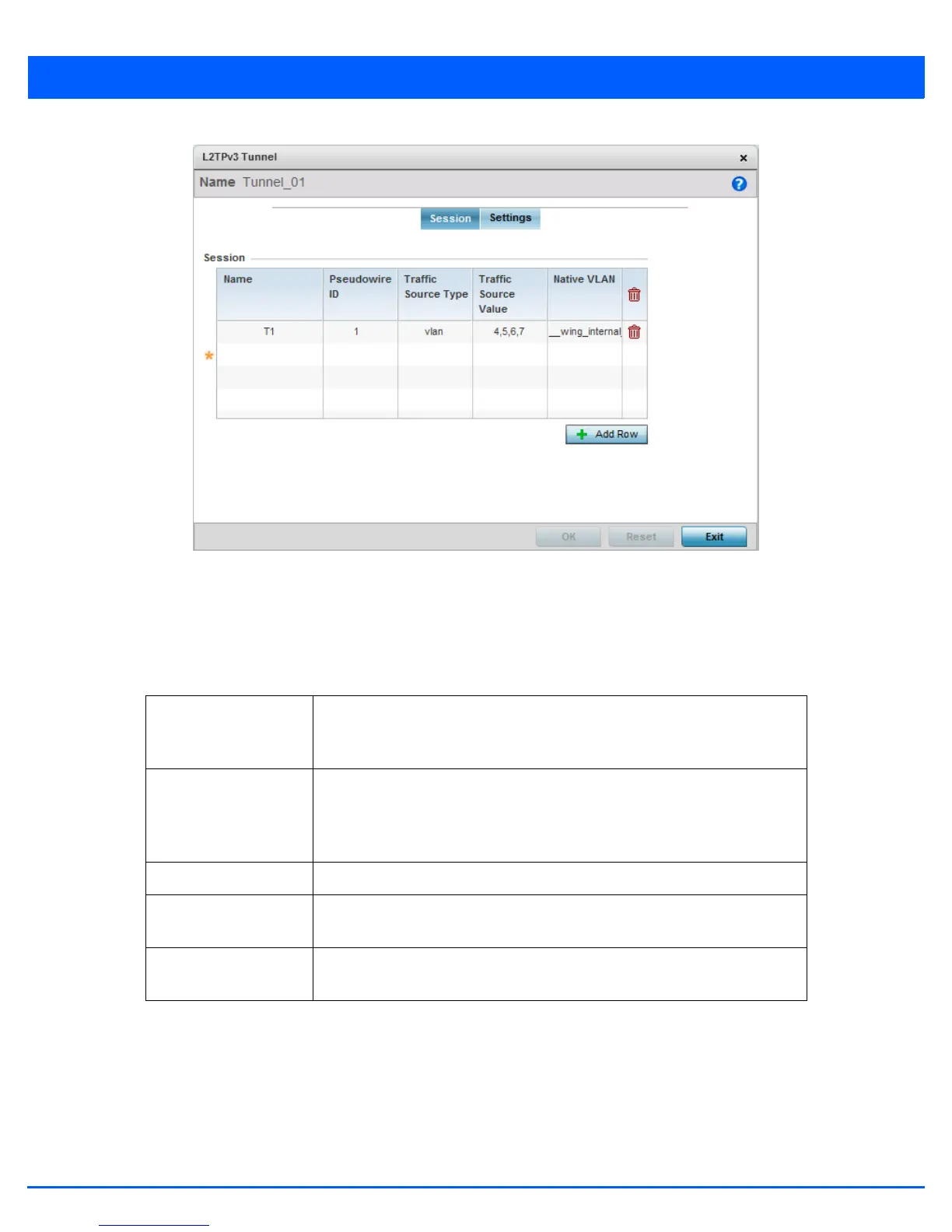 12. Select + Add Row to populate the table with configurable session parameters for this tunnel configuration.