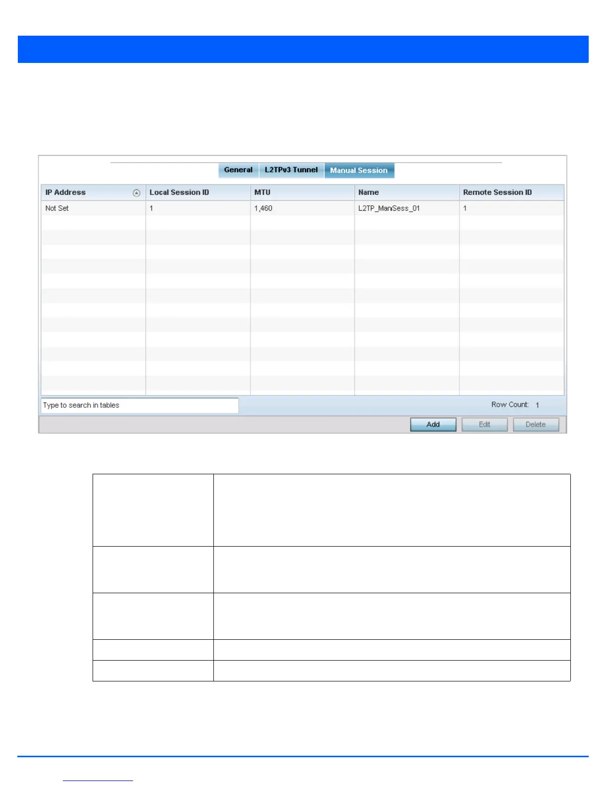 23. Select Add to create a new manual session, Edit to modify an existing session configuration or Delete to remove a