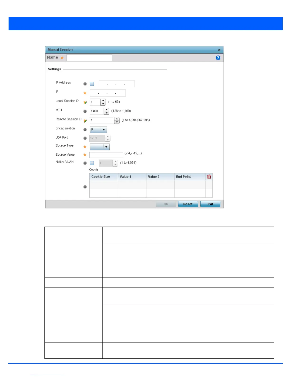 Name Define a 31 character maximum name for this tunnel session. Each session name