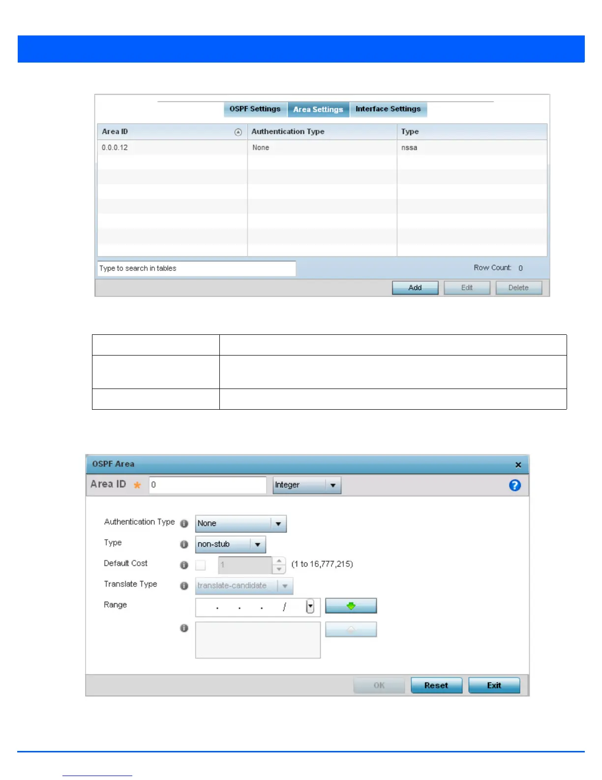 13. Select Add to create a new OSPF configuration, Edit to modify an existing configuration or Delete to remove a
